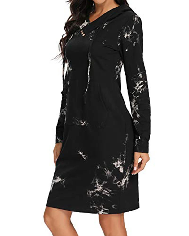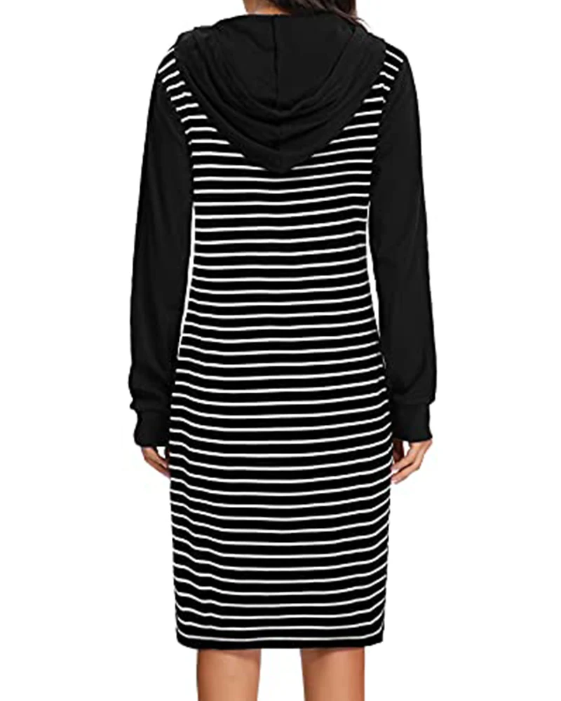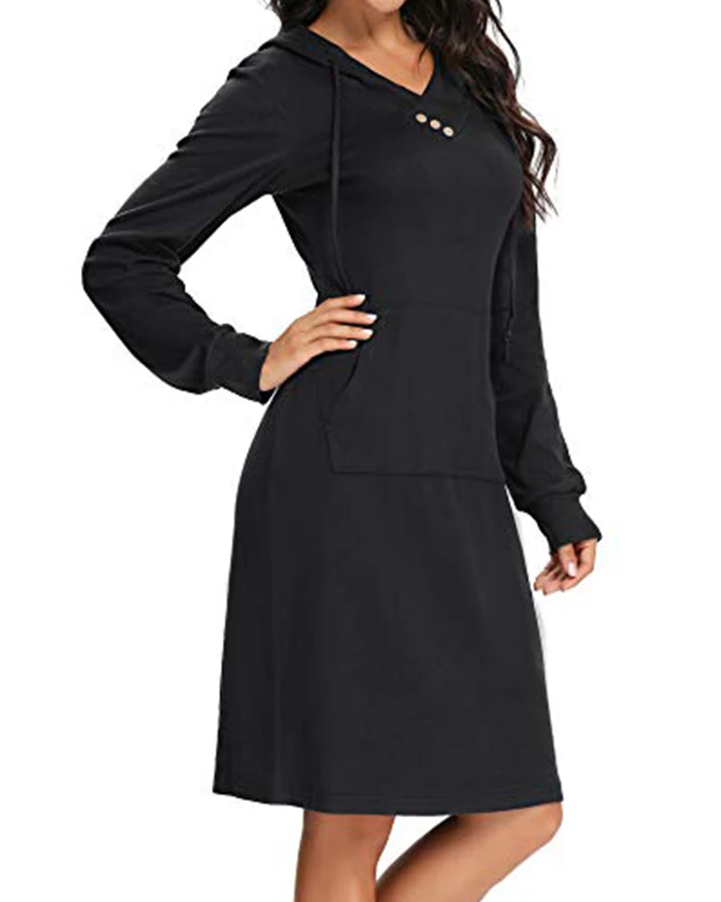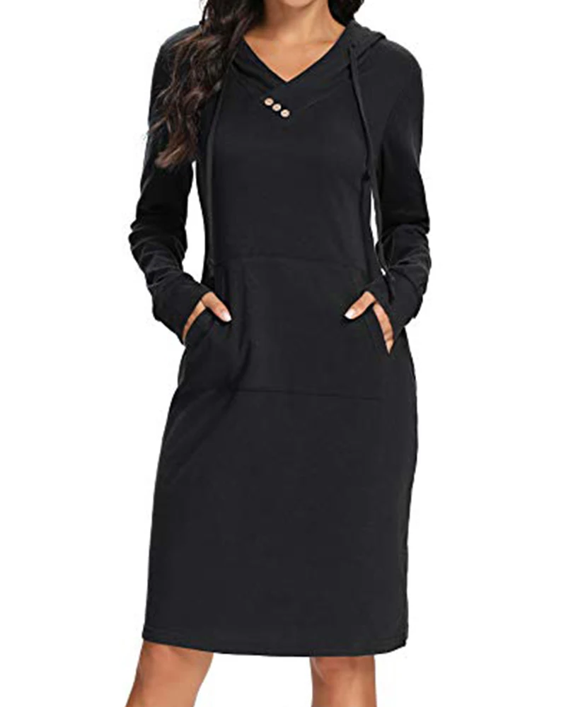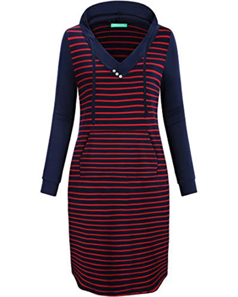 Wholesale Leisure Multi-color Women's Sports Pullover Hooded Midi Length Dress 2026 Early Autumn Front Pocket Design Dress