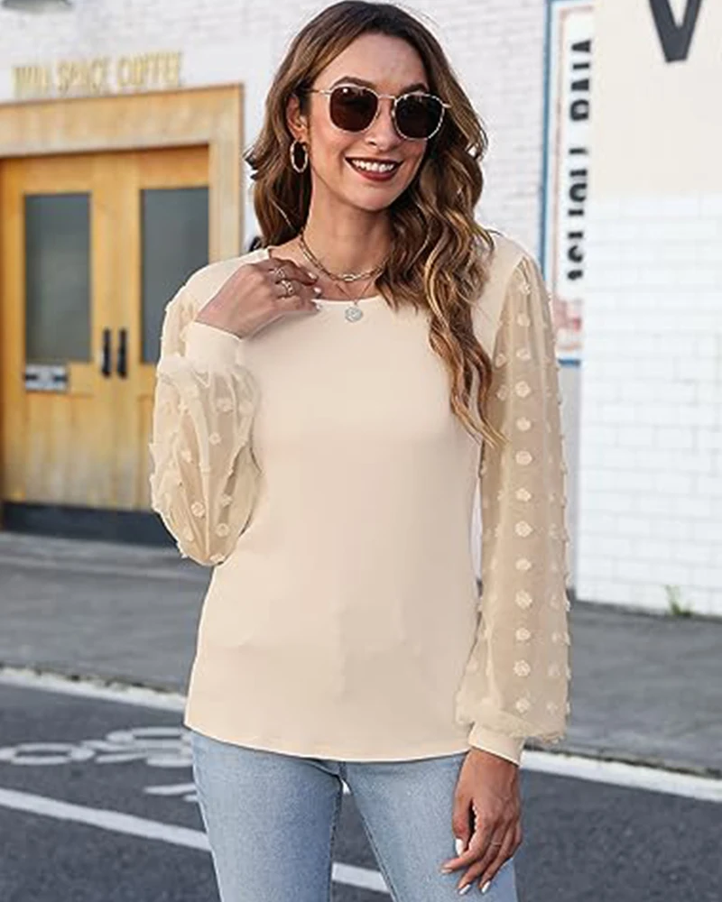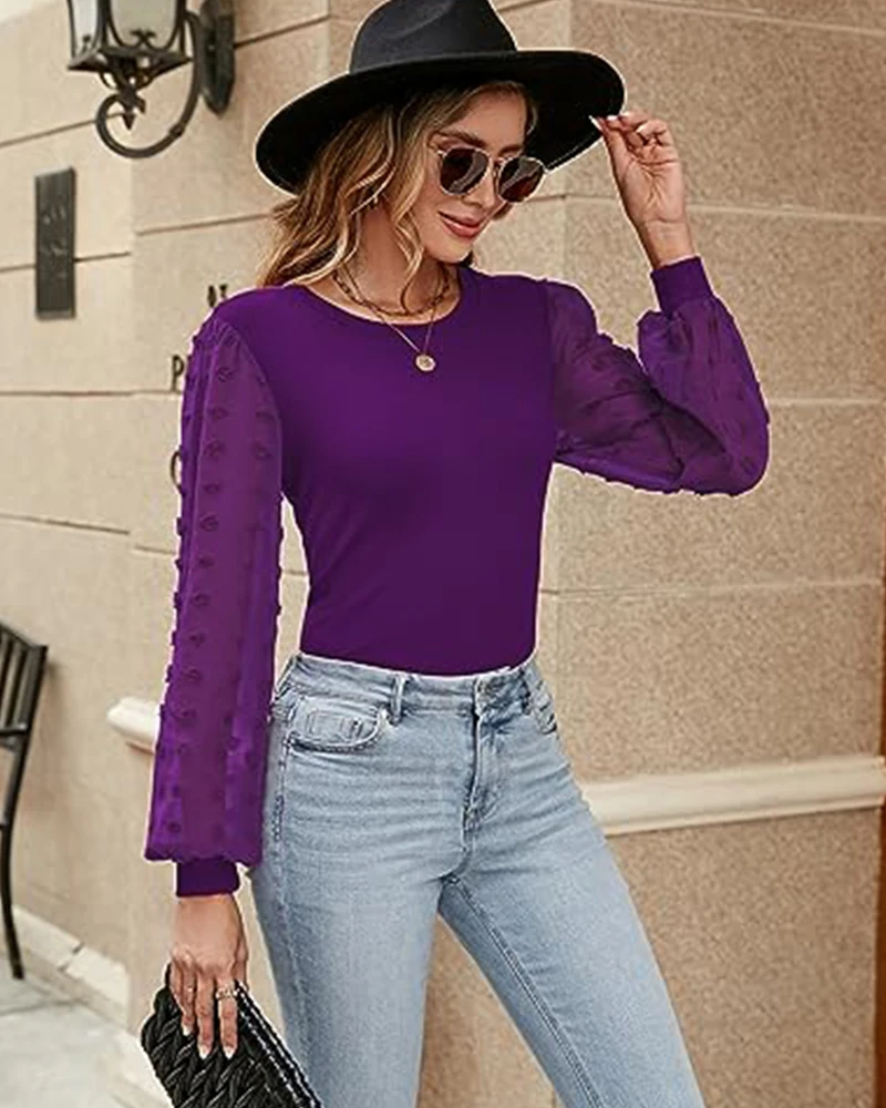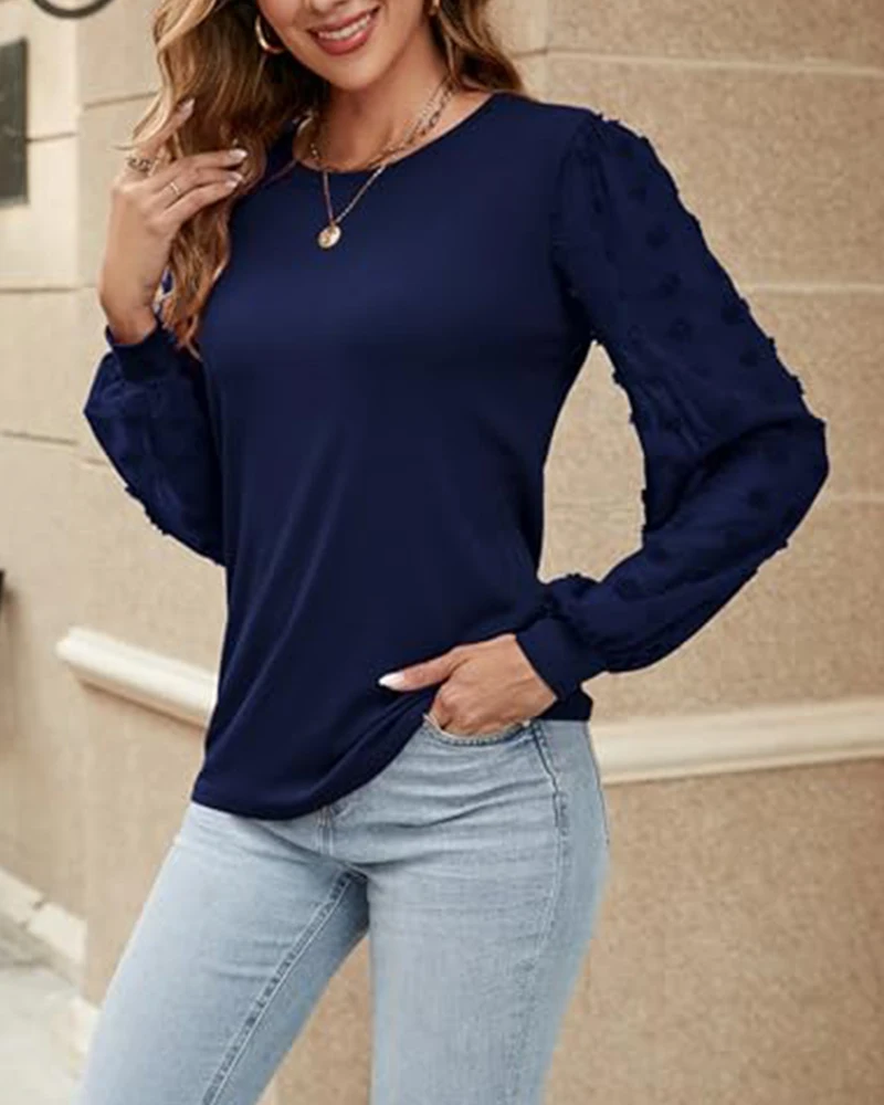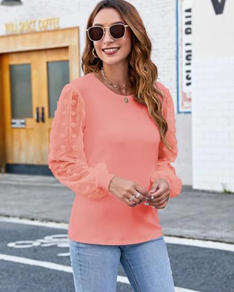 Sexy Casual Chic Style Top for Women Simple Basic Design O-Neck Long Sleeves Shirts With Lace Hollow