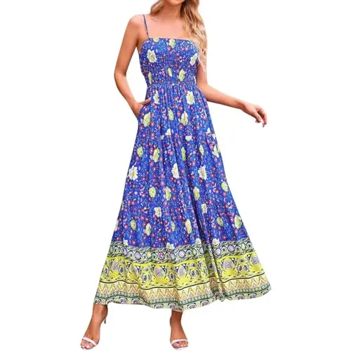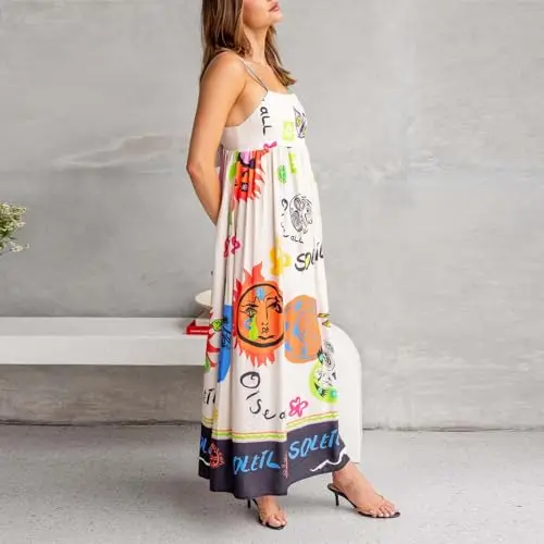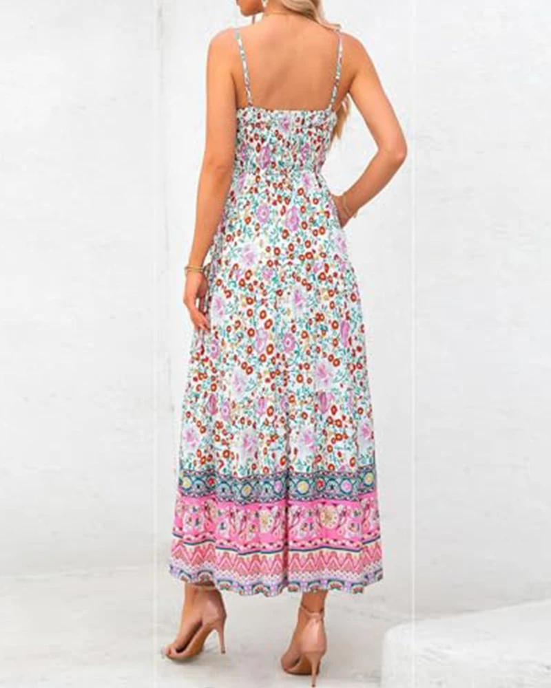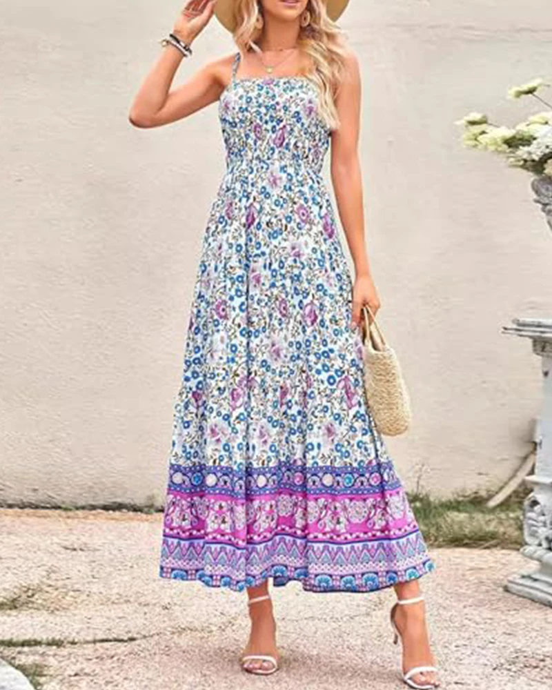 Summer New Elegant Floral Print Sleeveless Camisole Long Dress Women's Vacation Beach Loose Casual High Waisted Backless Dress