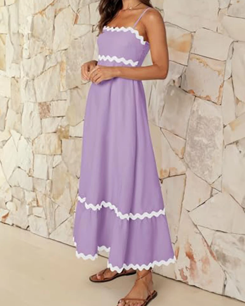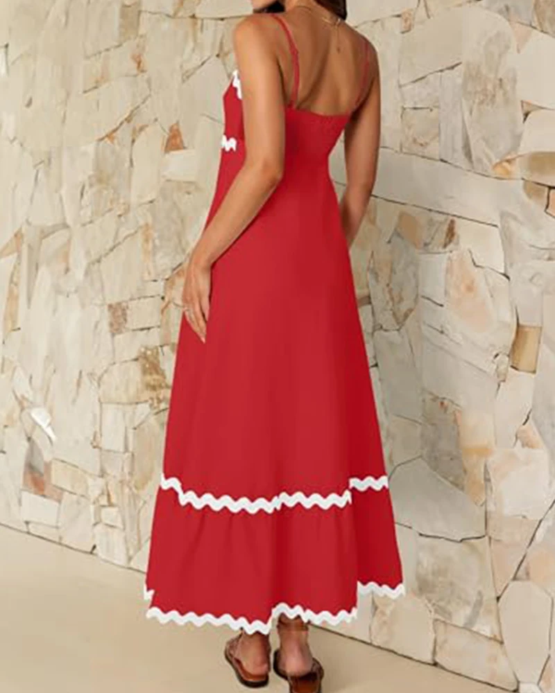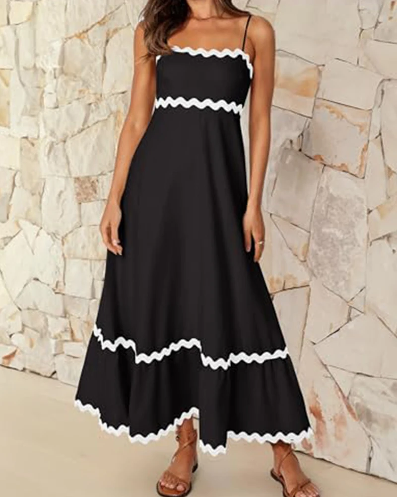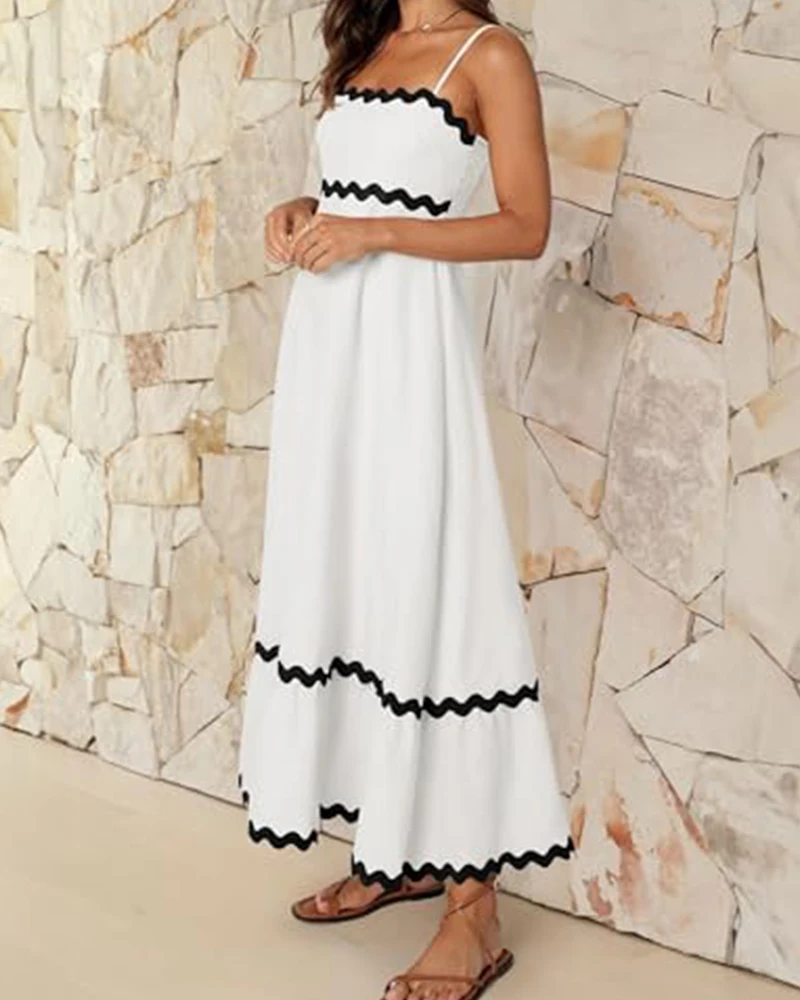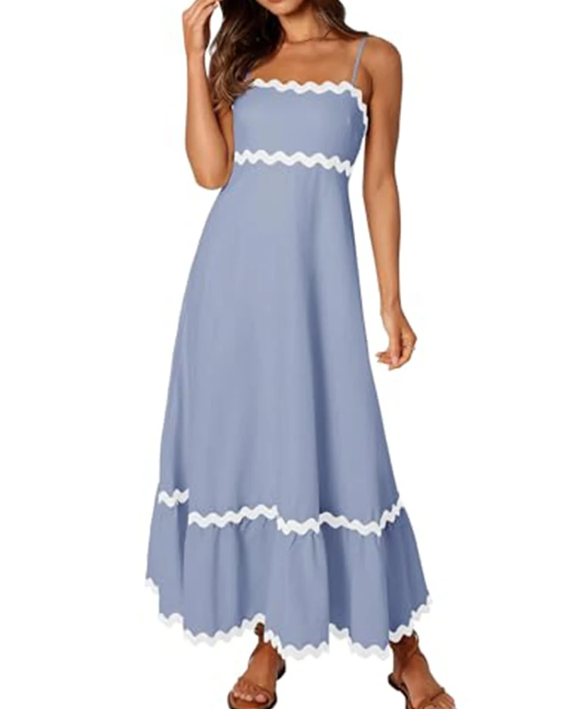 Summer Fashion Thin Shoulder Strap Minimalist Design Solid Color Long Skirt Bohemian Style Seaside Vacation Slim Fit Sun Skirt