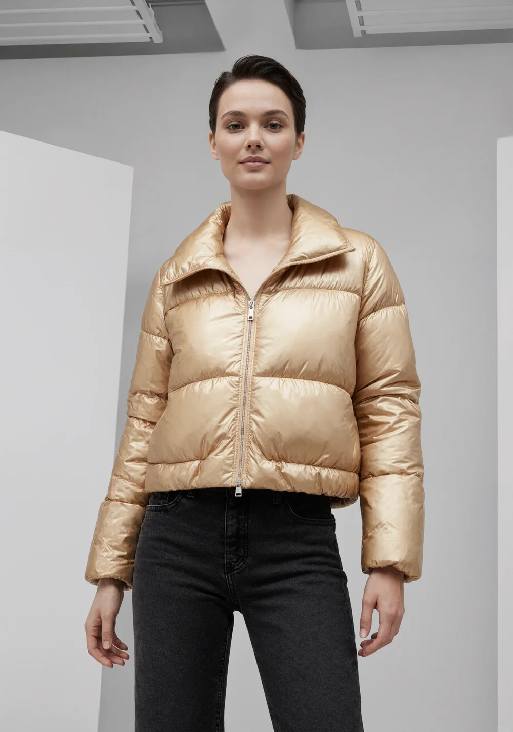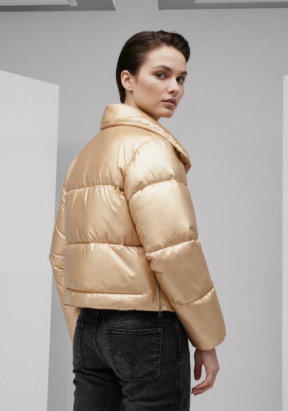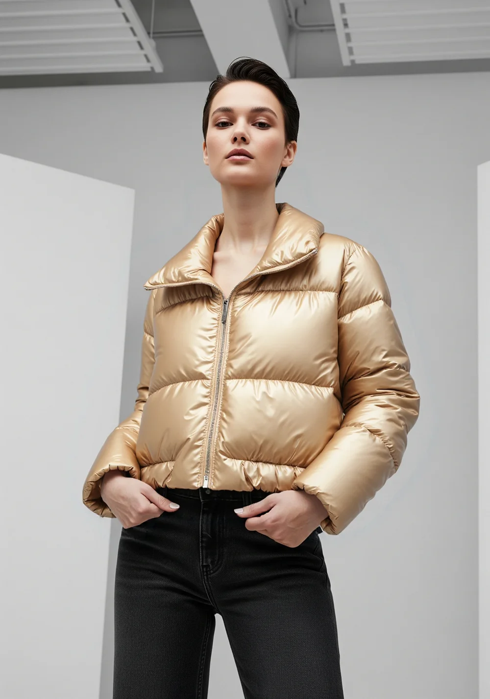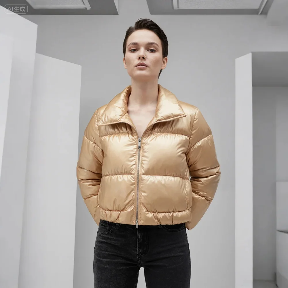 2026 New Women's Fall Fashion Versatile Patent Leather Quilted Jacket Candy Colors Puff Sleeve Warm Casual Jacket Outwear