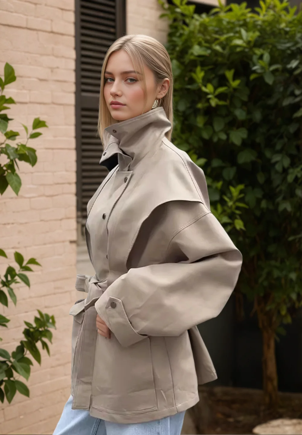 New European Fashion Women's Simple Belted Long-Sleeve Solid Collared Breathable Quilted Jacket Regular Autumn Winter Elegant