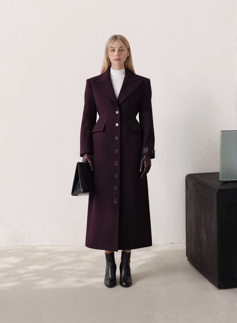 Wholesale 2026 Fall New Arrival Women's Two-Tone Wool Blazer with Suit Collar Fitted Waist Long Coat