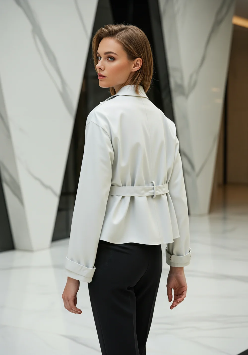 2026 Fall Casual Female Outerwear Chic Overshirt Women's Fashionable Elegant Belted Collared Short Trench Coat