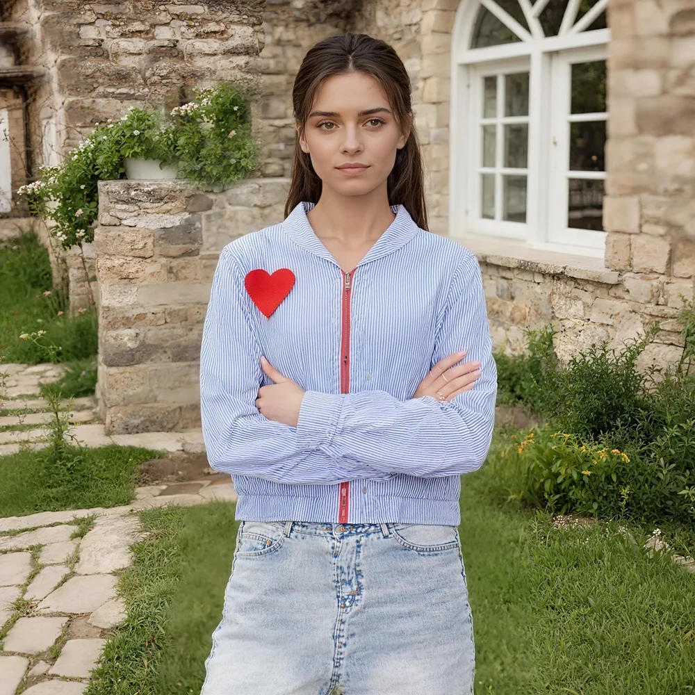 Women's Coat 2026 New Fashion Versatile Fashionable Women's Striped Heart Patchwork Zipper Pocket Simple Jacket