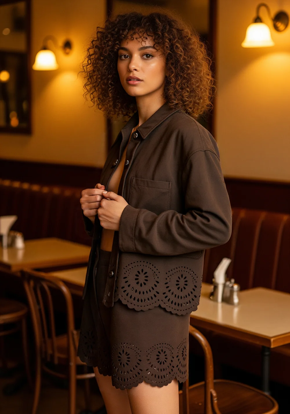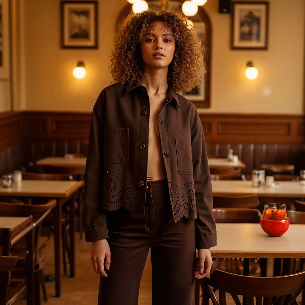 2026 Autumn New Fashion Women's Vintage Casual Versatile Hollow Hem Lapel Faux-suede Jacket Long Sleeve Jacket