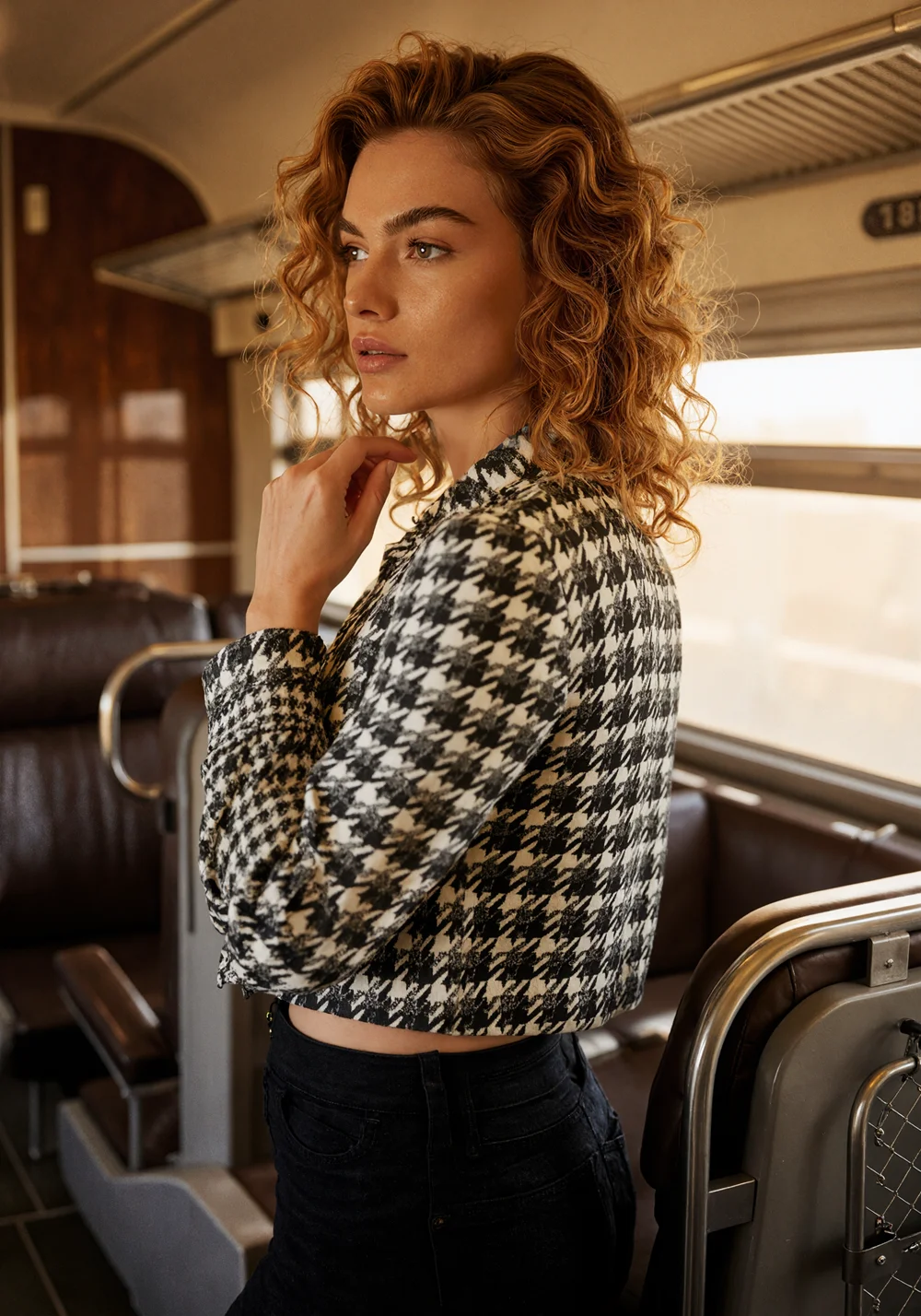 ZYHT 15545 Women's Blouses & Shirts Mint Green Tweed Blazer with Puff Sleeves & Peplum Fit Button-Detail Long Sleeve Jacket