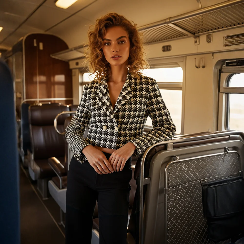 Lapel Shoulder Pad Short Suit Jacket Women's Winter Quilted All-match Ladies Blazers Winter Double-breasted Short Jacket