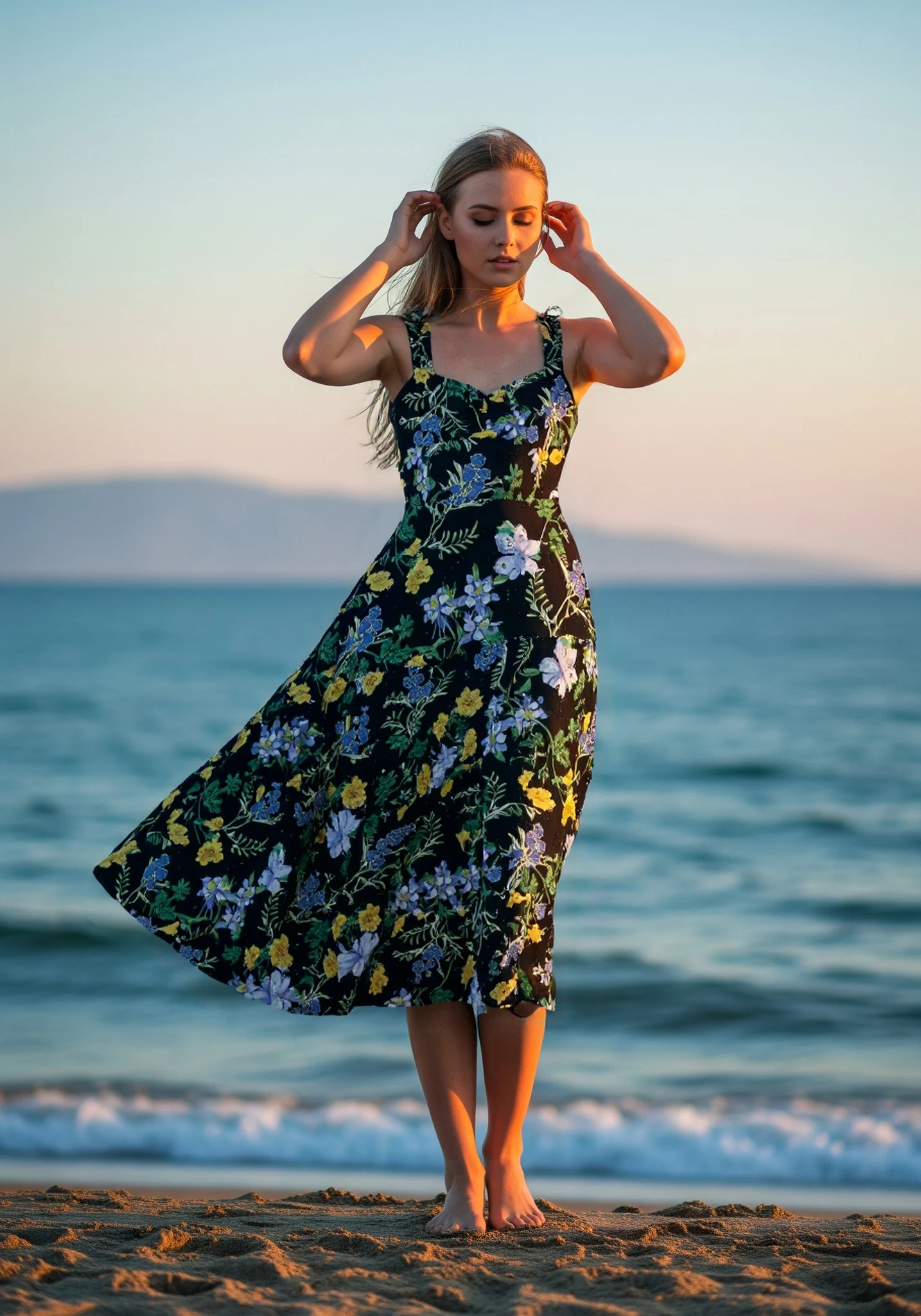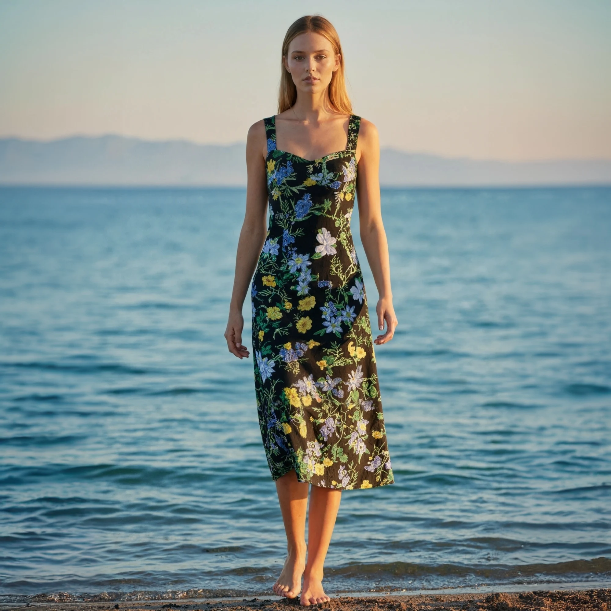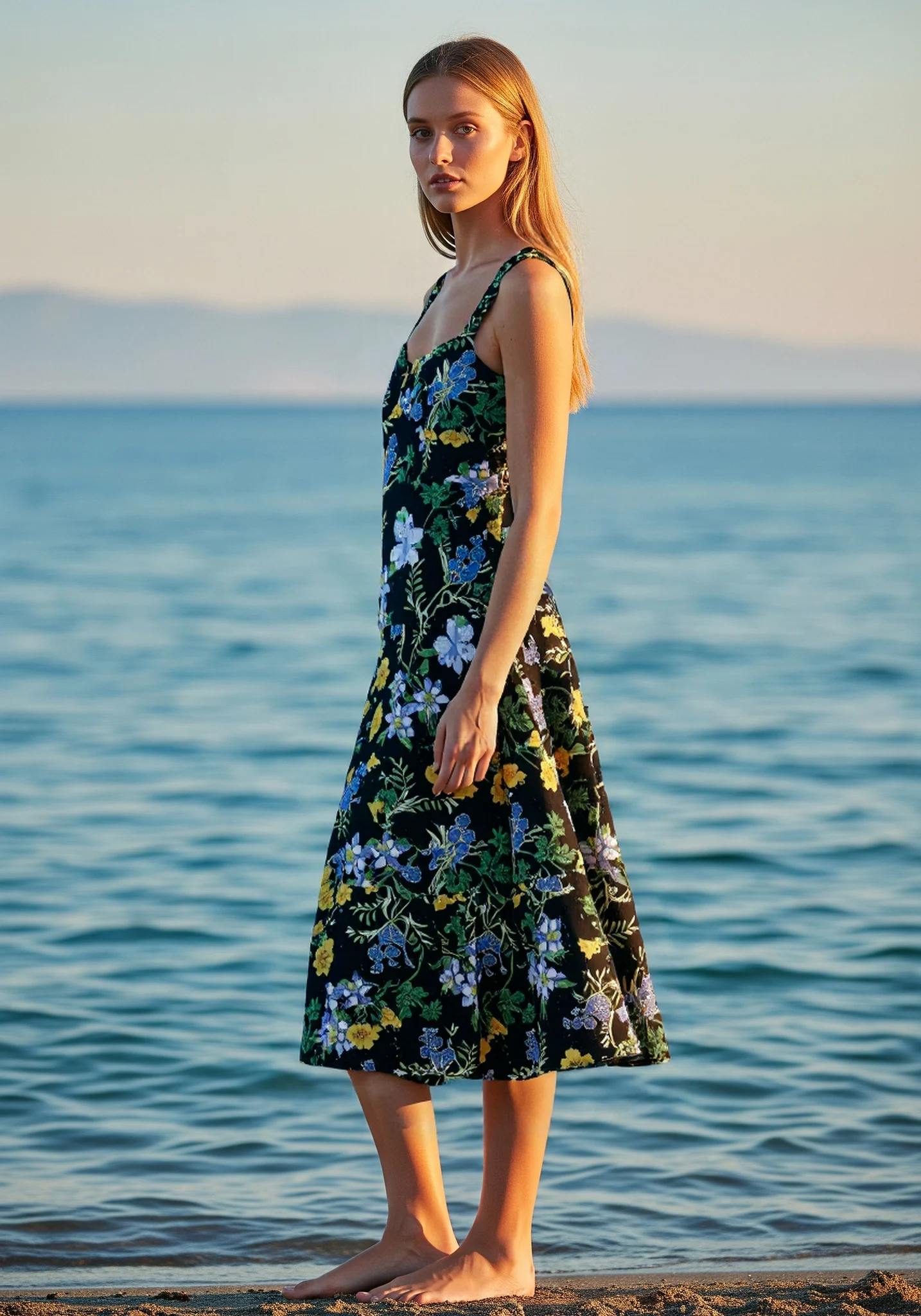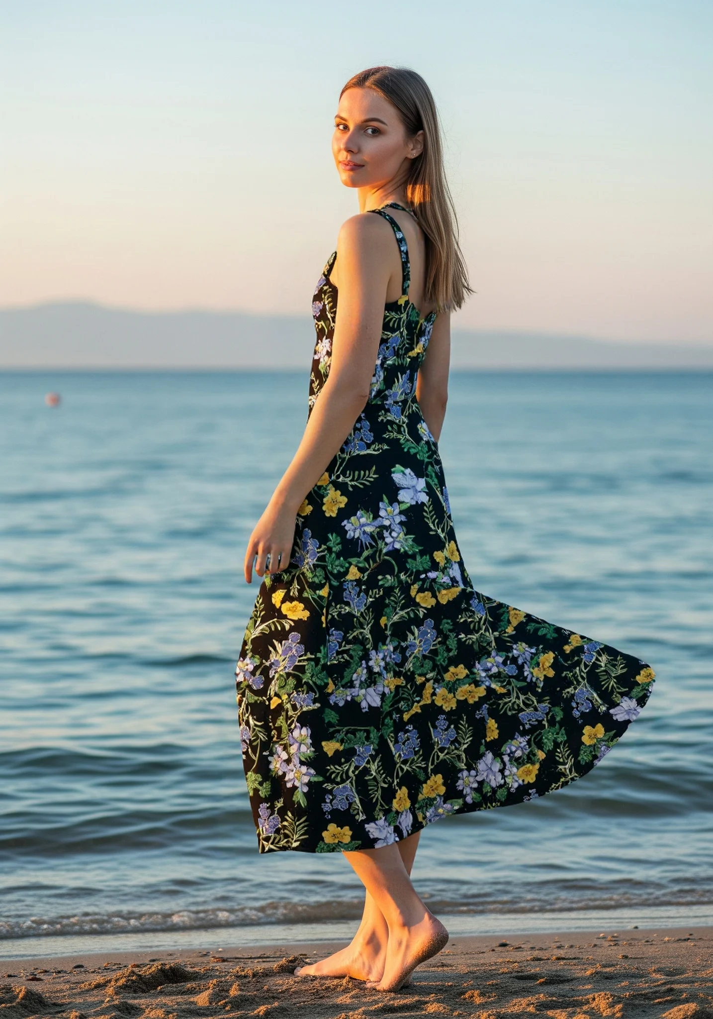 Customized 2026 Spring Hot Sale European American Elegant Floral Print Sleeveless Midi Beach Boho Dress