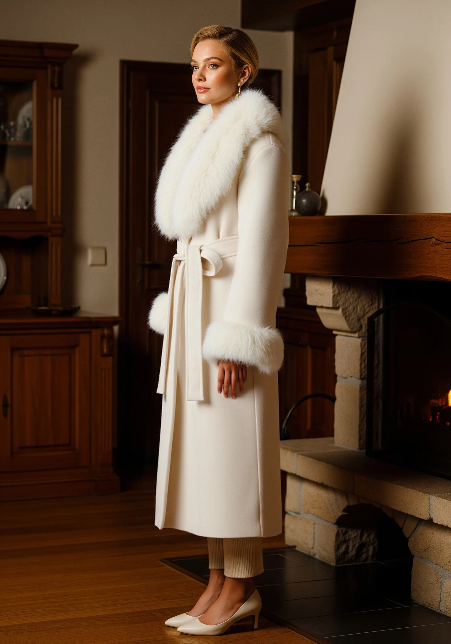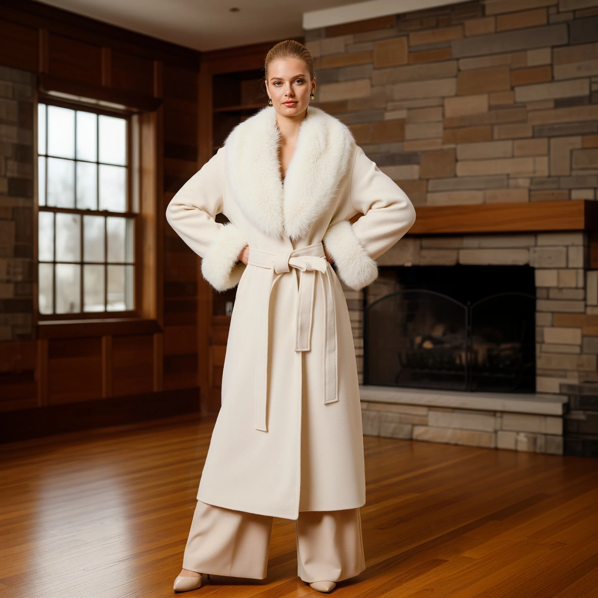 Women's Clothing 2026 Winter New Style with Large Fur Collar and Belt Elegant European Style White Luxury Long Coat