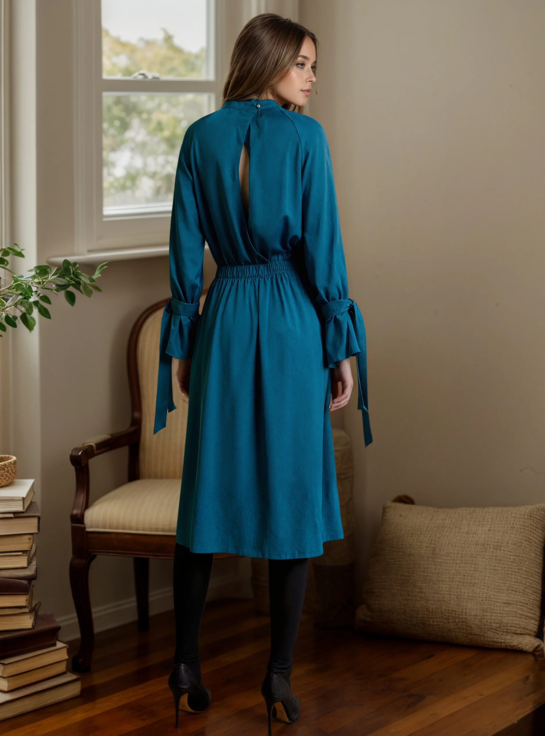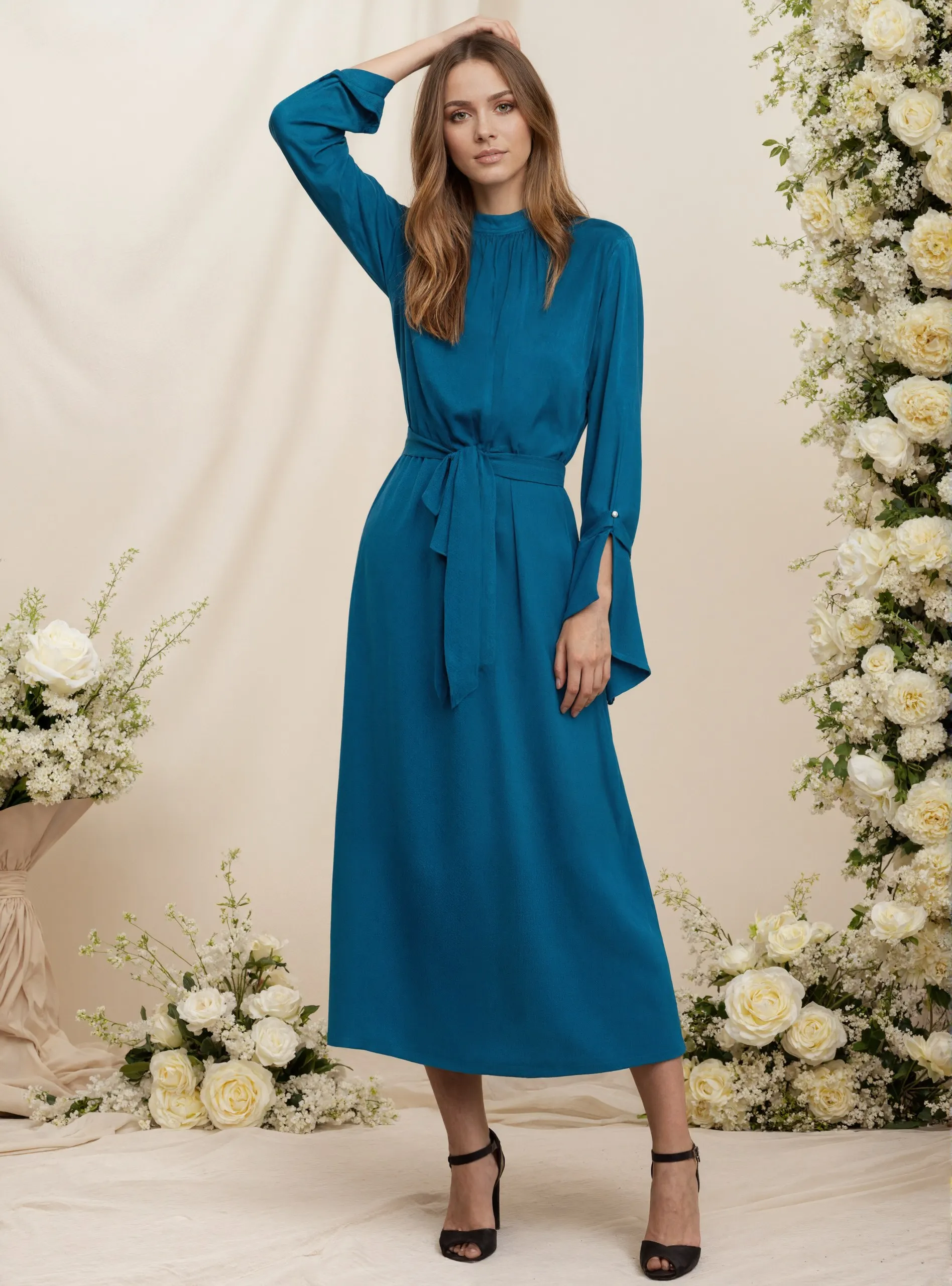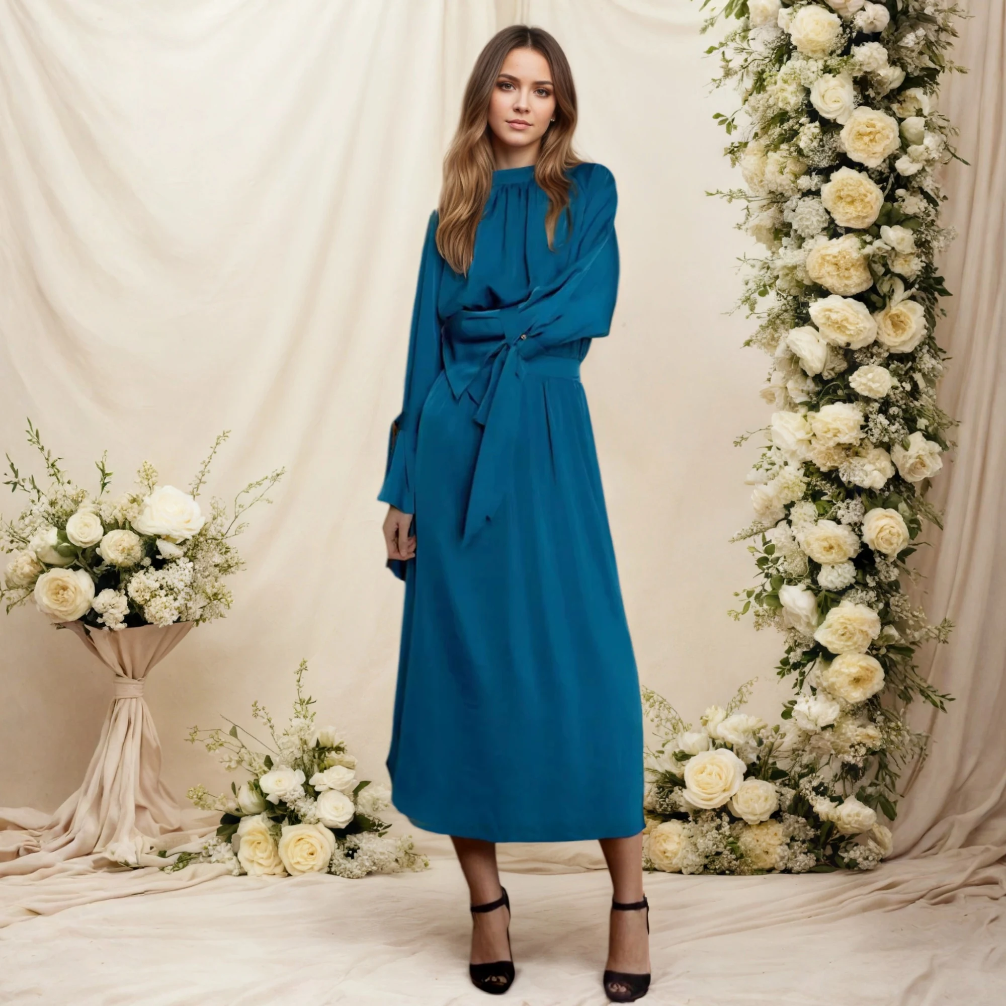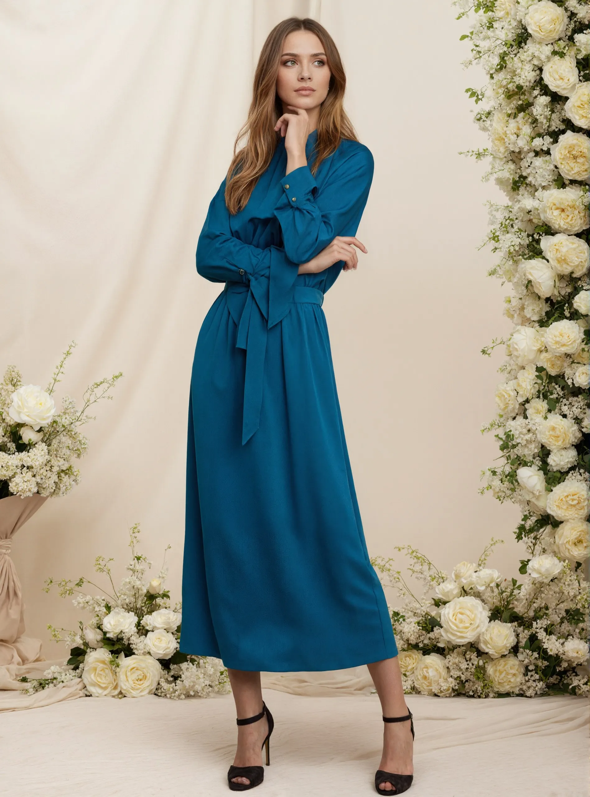 ZYHT 73902 Dark Green Blue Long Sleeve Simple Elegant Evening Dress Customize High End Women Clothing Manufacturer