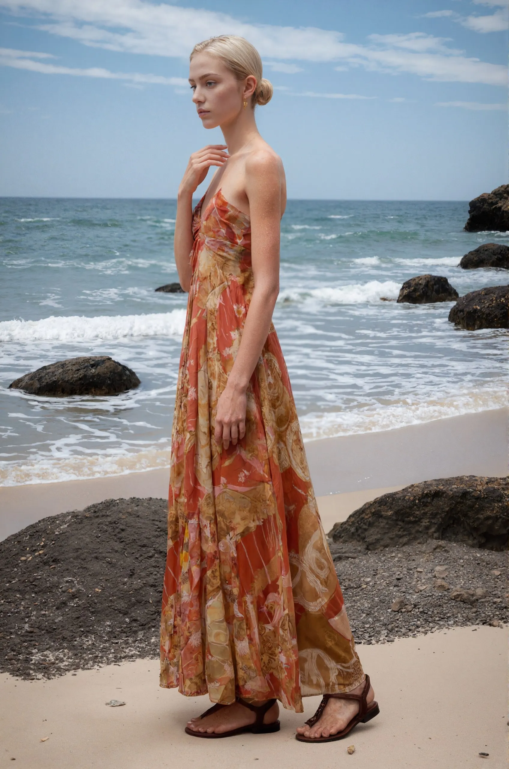 ZYHT 73957 Hot Selling Women Lady Printed Satin Beige Mermaid Fish Tail Floor Length Party Cocktail Evening Dress Gown