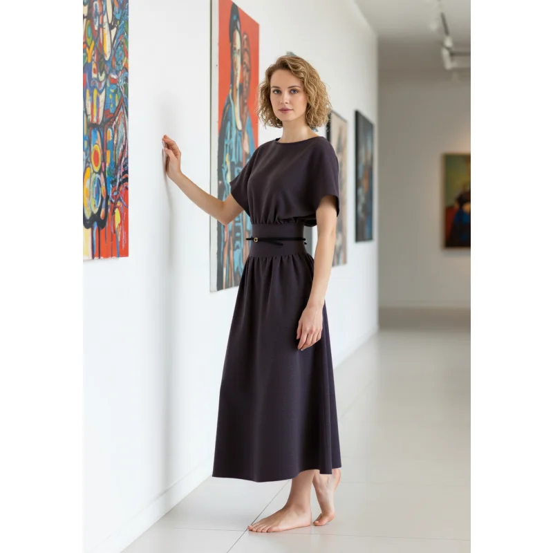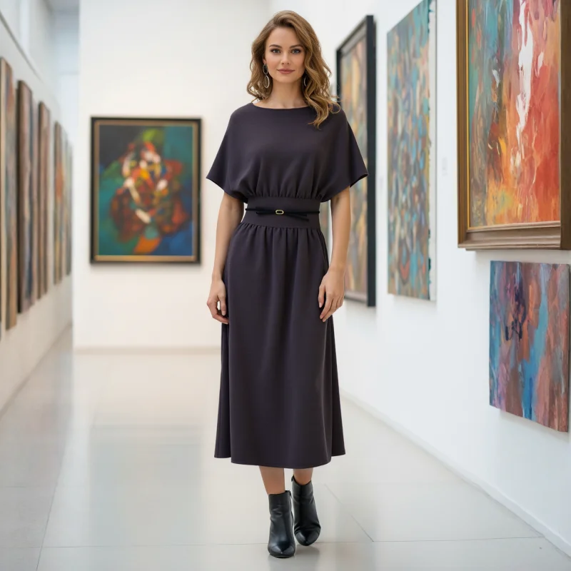 Wholesale Autumn New Women's Vintage Anti-Static Slim Fit Empire Waist Long Skirt Polyester Dress