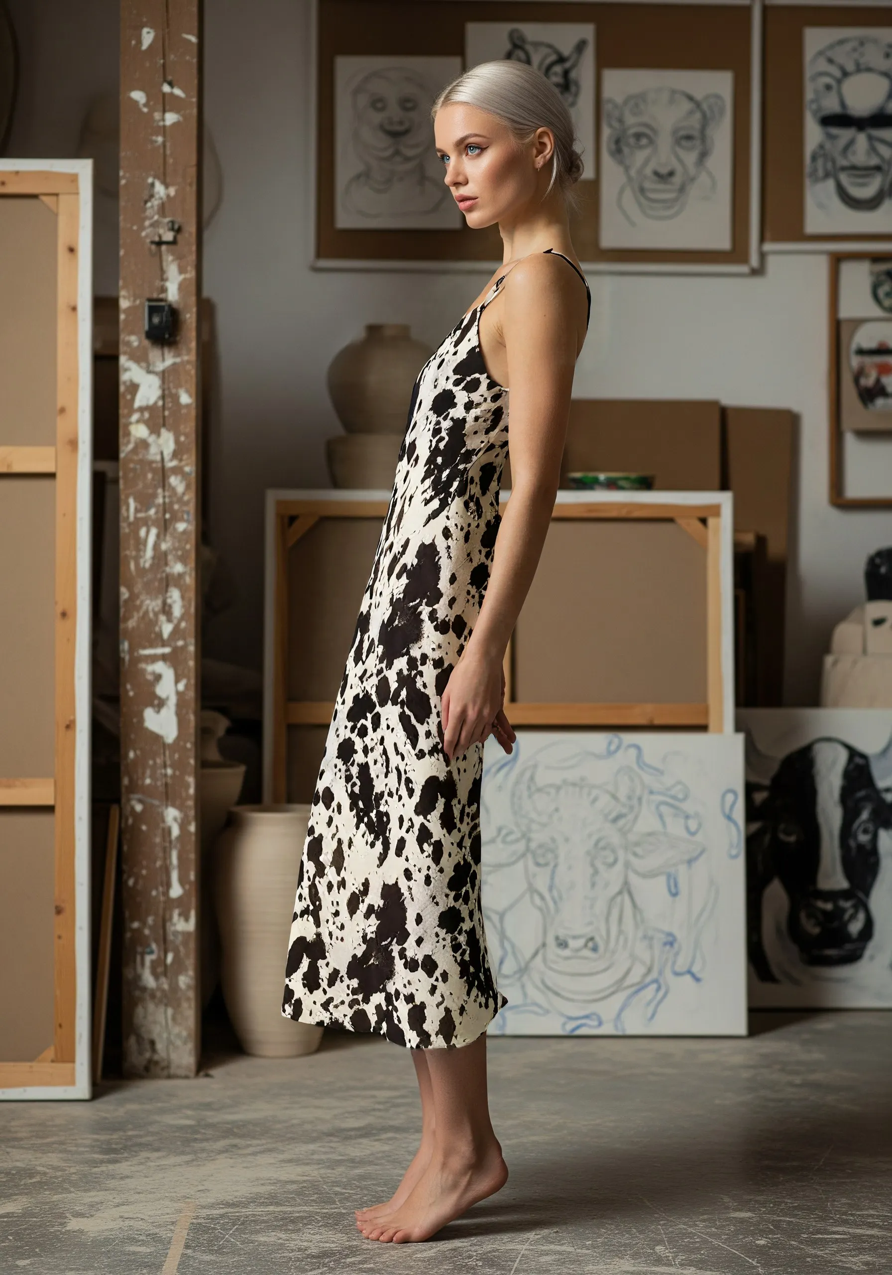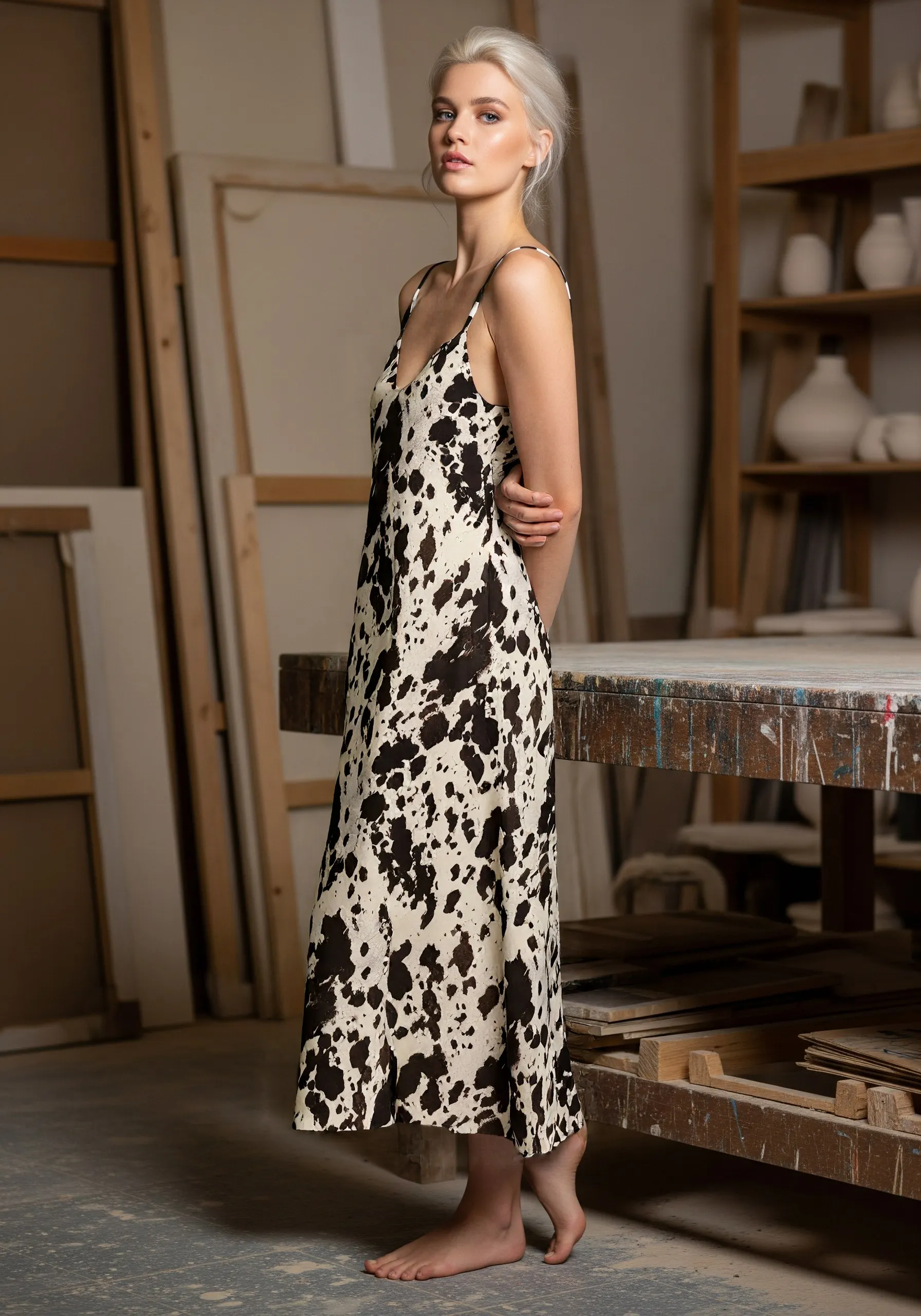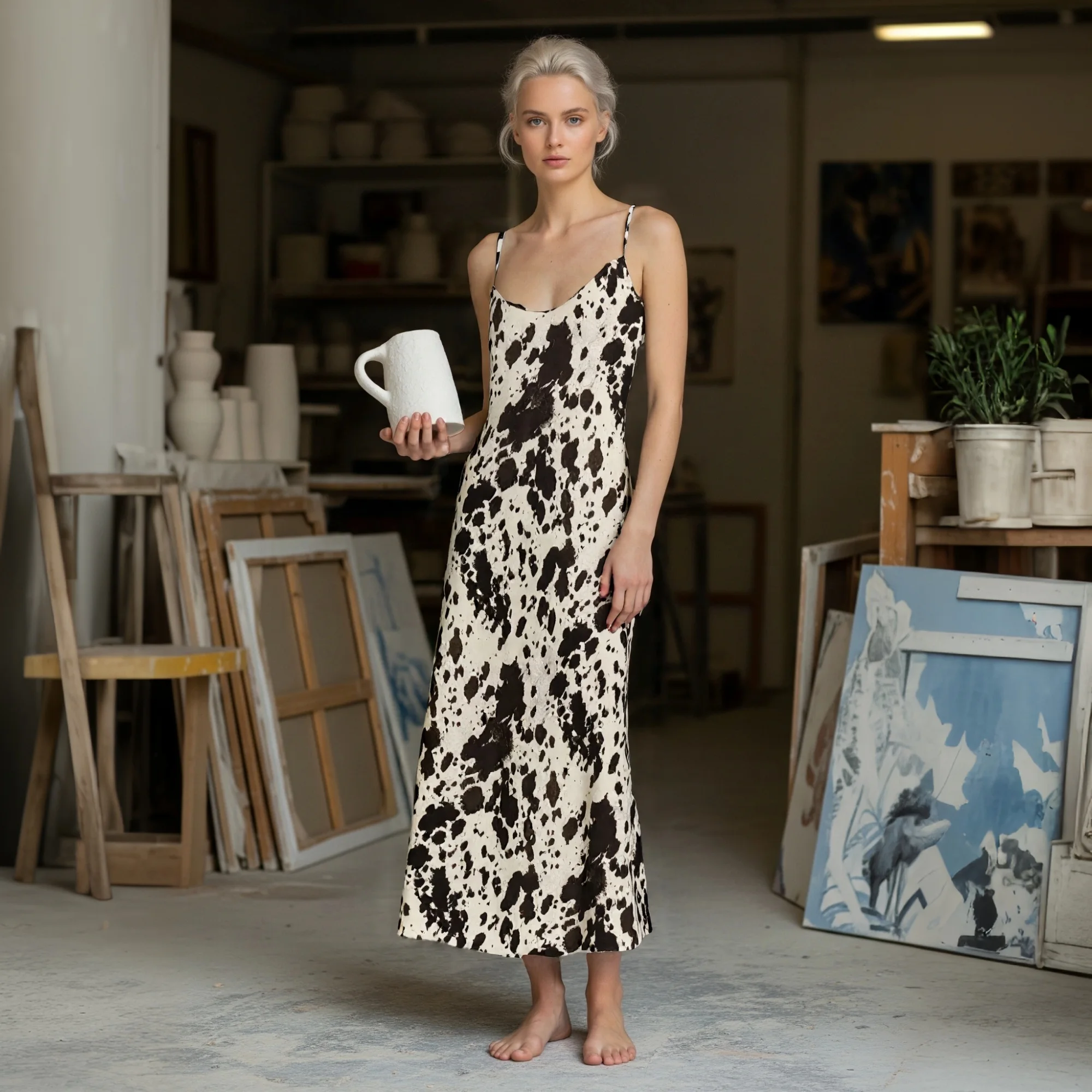 Animal Print Sleeveless Halter-Neck Midi Dress Multi Color Spaghetti Strap Hot Sale Casual Fashion Ladies Long slip Dress