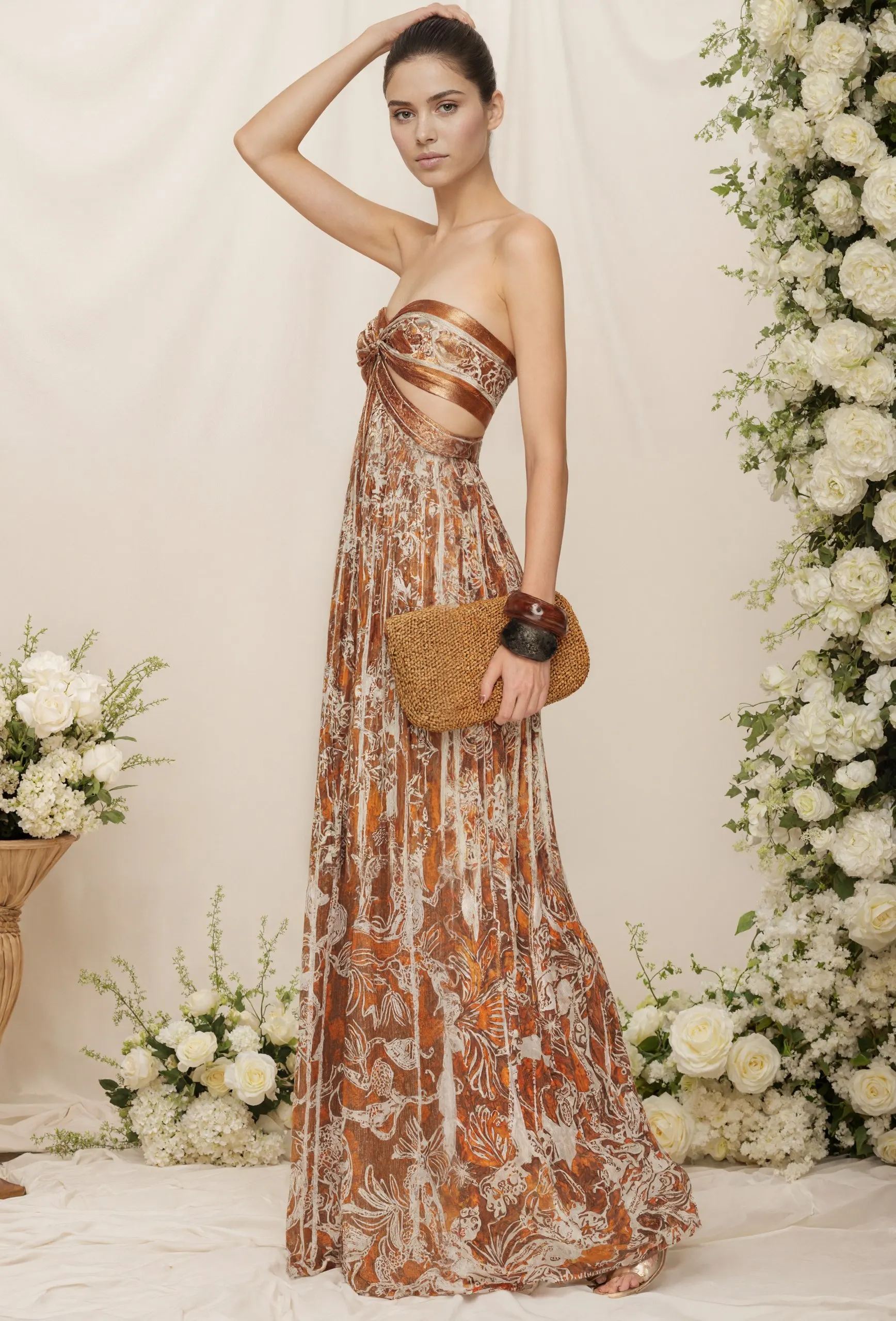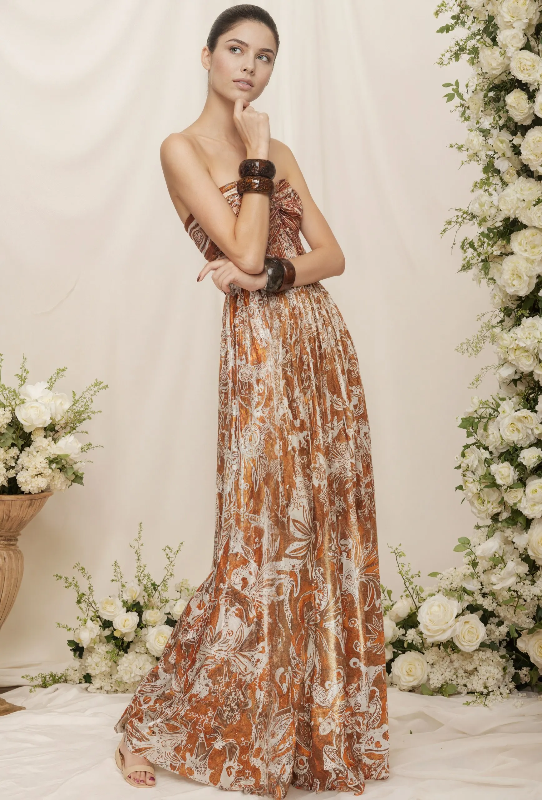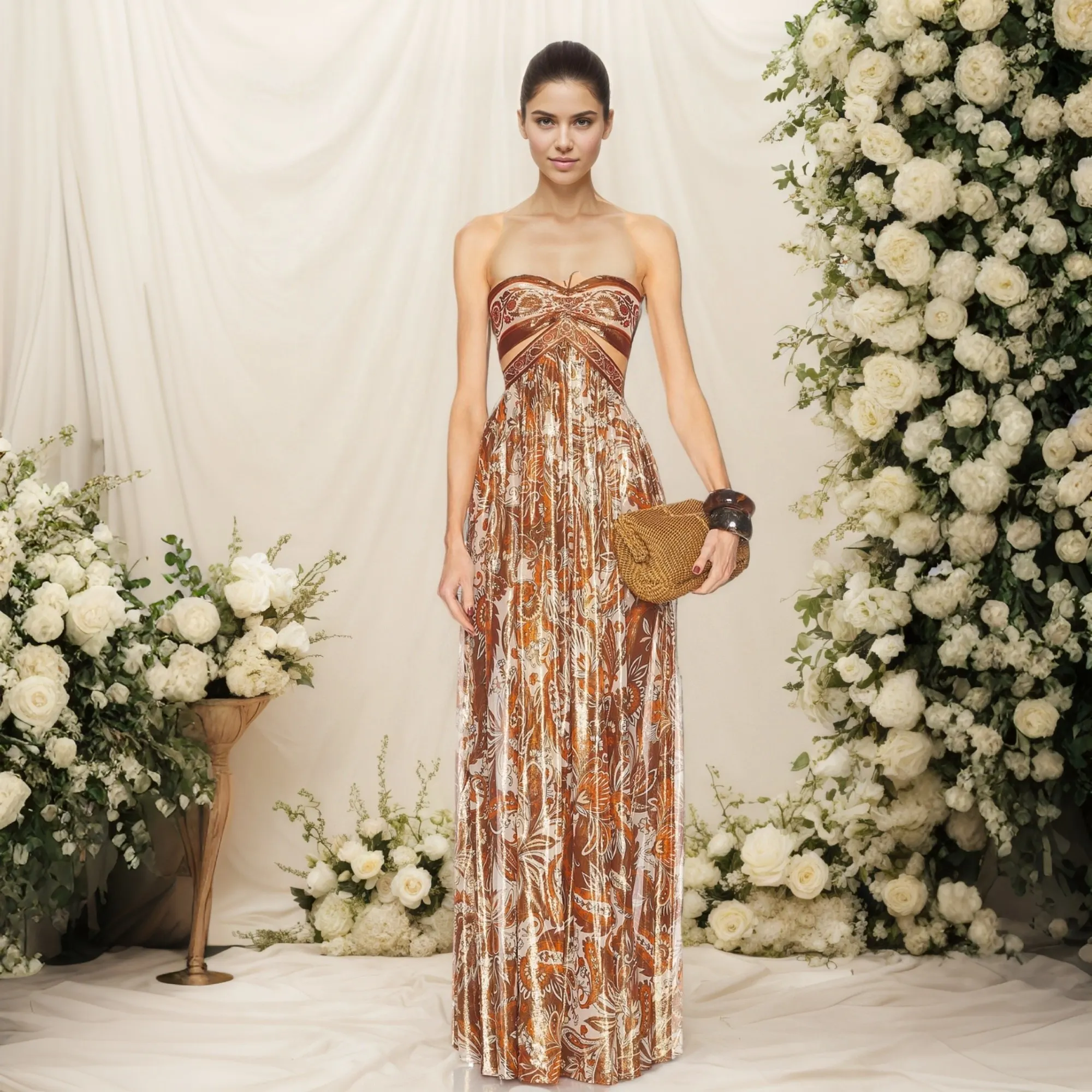 ZYHT 73957 Hot Selling Women Lady Printed Satin Beige Mermaid Fish Tail Floor Length Party Cocktail Evening Dress Gown