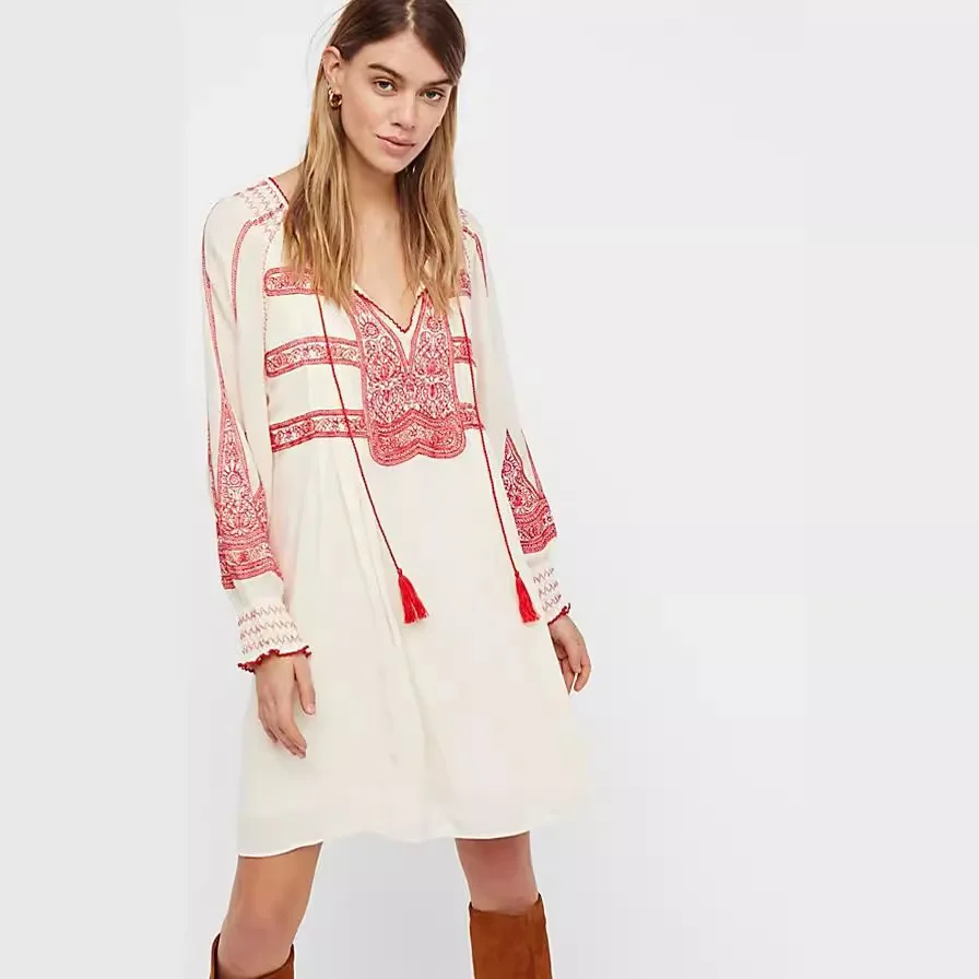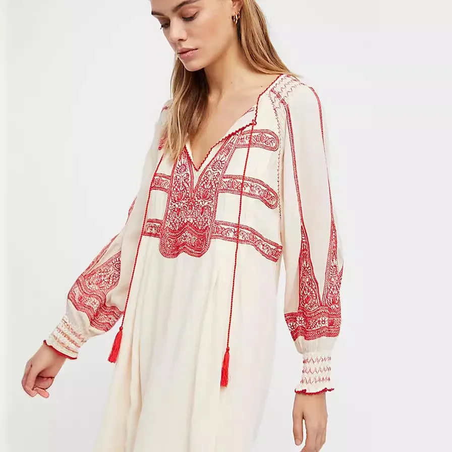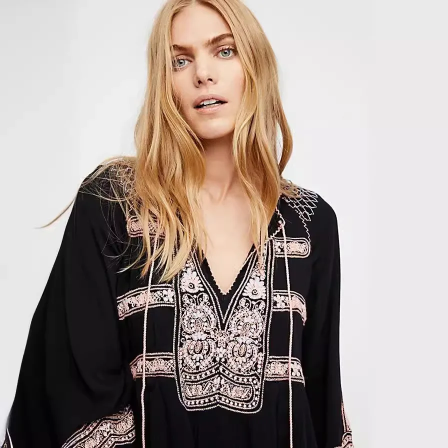 Bohemian Embroidered Shirt for Women Hippie Clothes Mexican Peasant DressTraditional Boho Clothing Tunic Dress