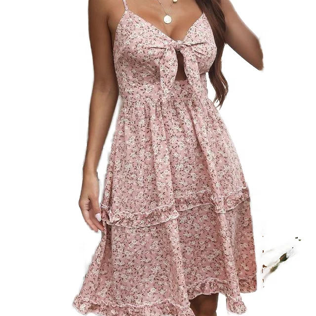 Women's A-Line Floral Chiffon Mini Dress Spaghetti Strap Casual Summer Vacation Backless Sustainable Washable