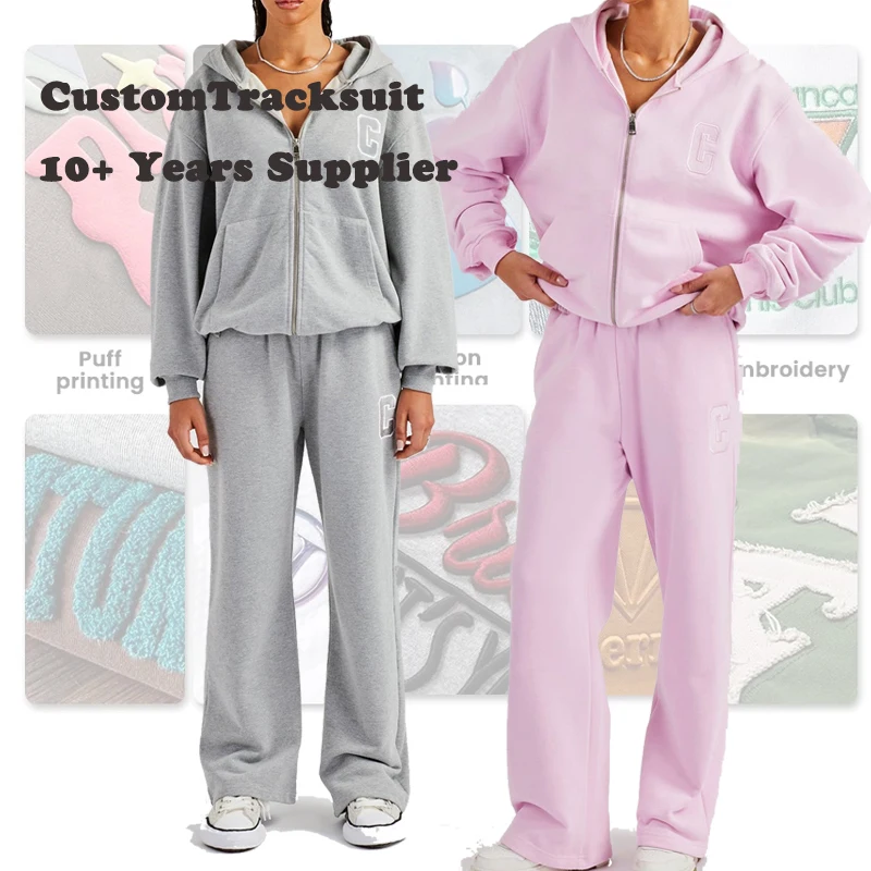 Customizable Women Summer Casual Two Piece Set Zip up Hoodie Jogging Suits Cotton French Terry Vintage Streetwear Tracksuit