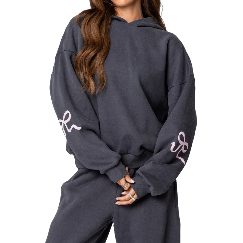 OEM Custom Print Pullover Hoodie for Women Drop Shoulder Full Sleeve Sweat Top Loose Fit Above Knee Length for Summer Spring
