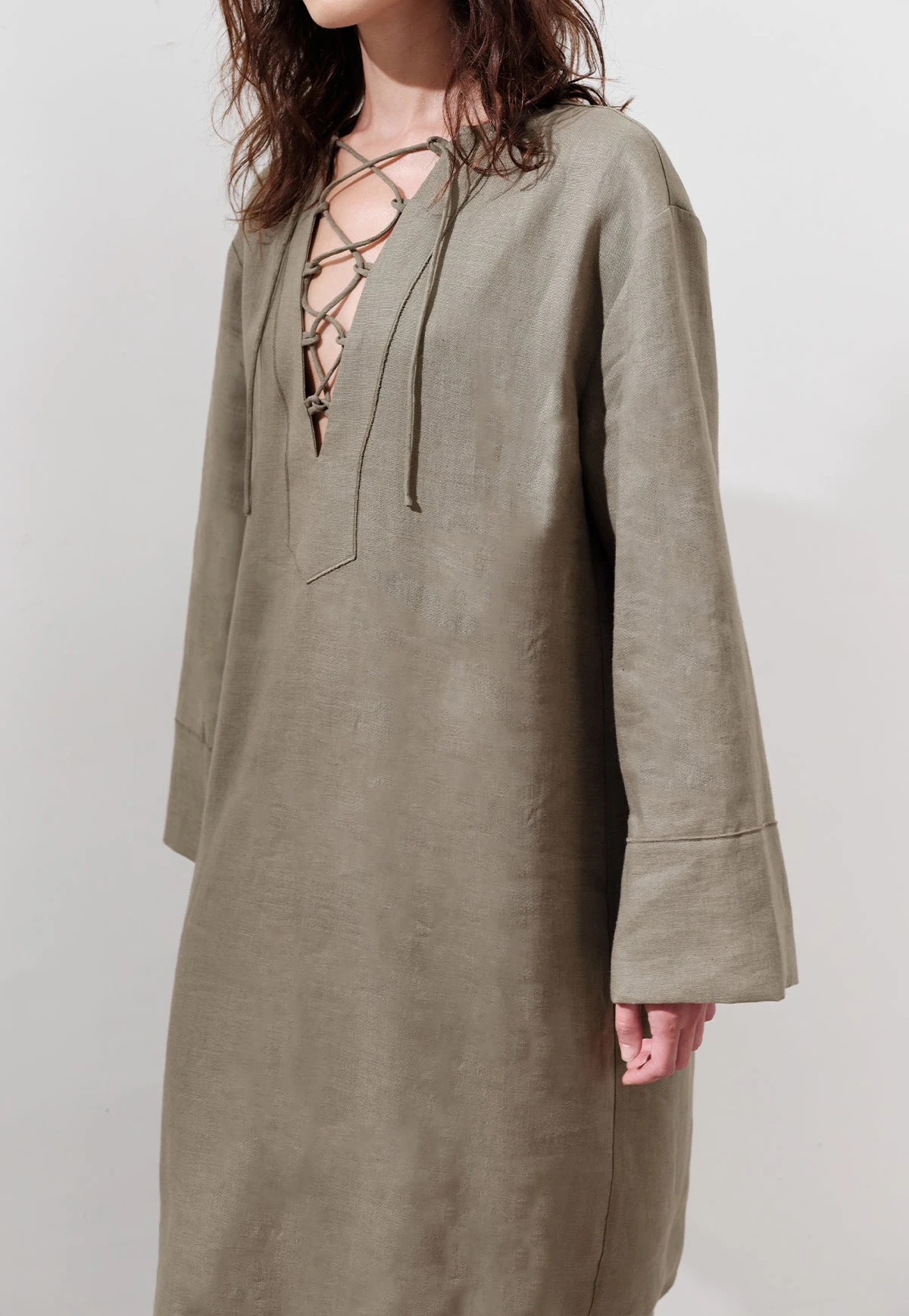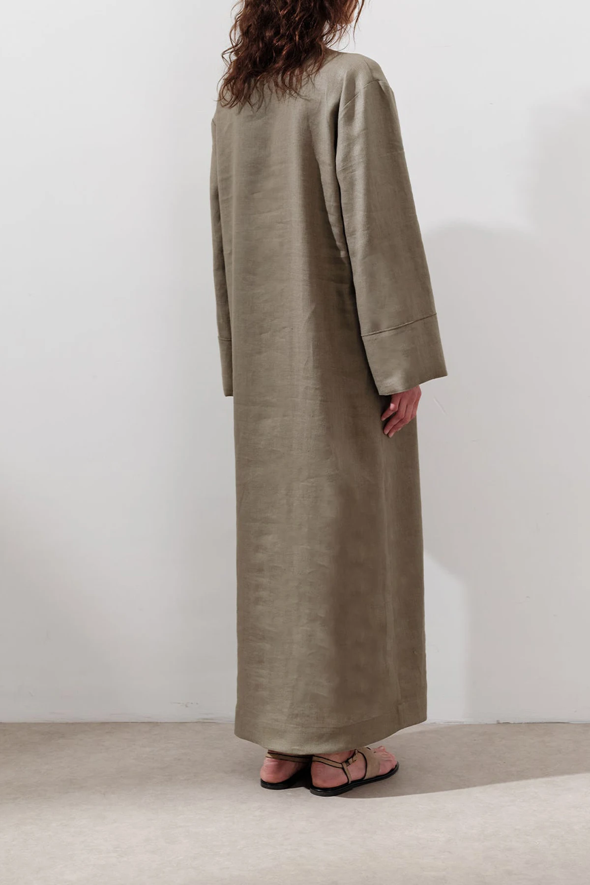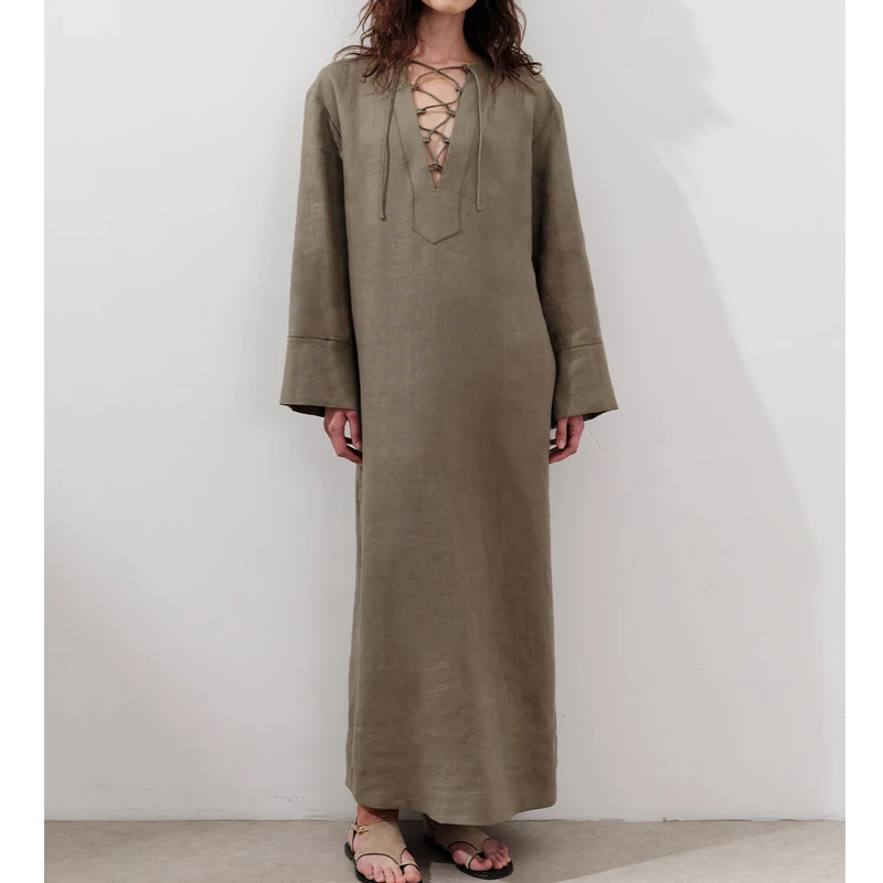 Custom Clothing Natural Linen Muslim Modest Maxi Dress Solid Color Islamic Abaya Dresses
