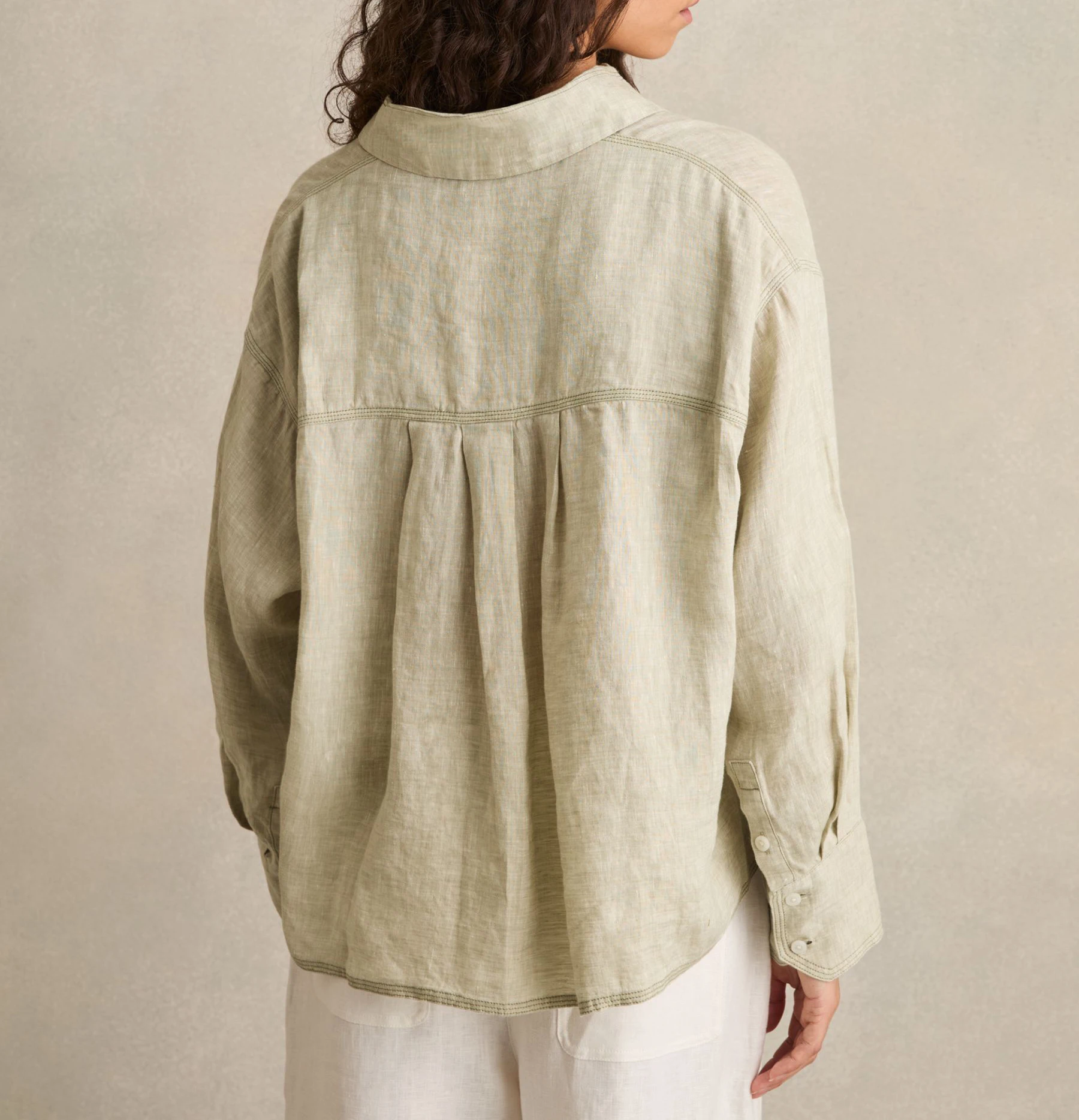 Women's Linen V-Neck Top for Spring Summer Casual Loose Long Sleeve Shirt Button Plain Dyed Woven Featuring Simple Design Front
