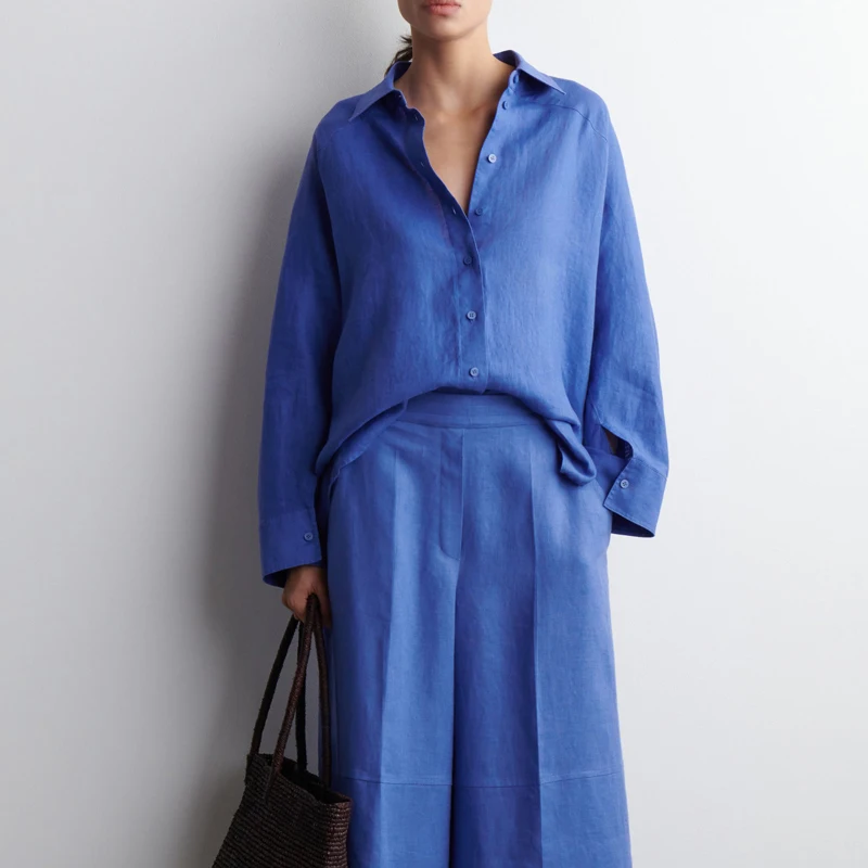 High Quality Spring New Arrival Women Wholesale Linen Cotton Shirts Long Sleeve Top Solid Casual Boxy Blouses
