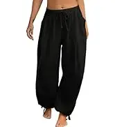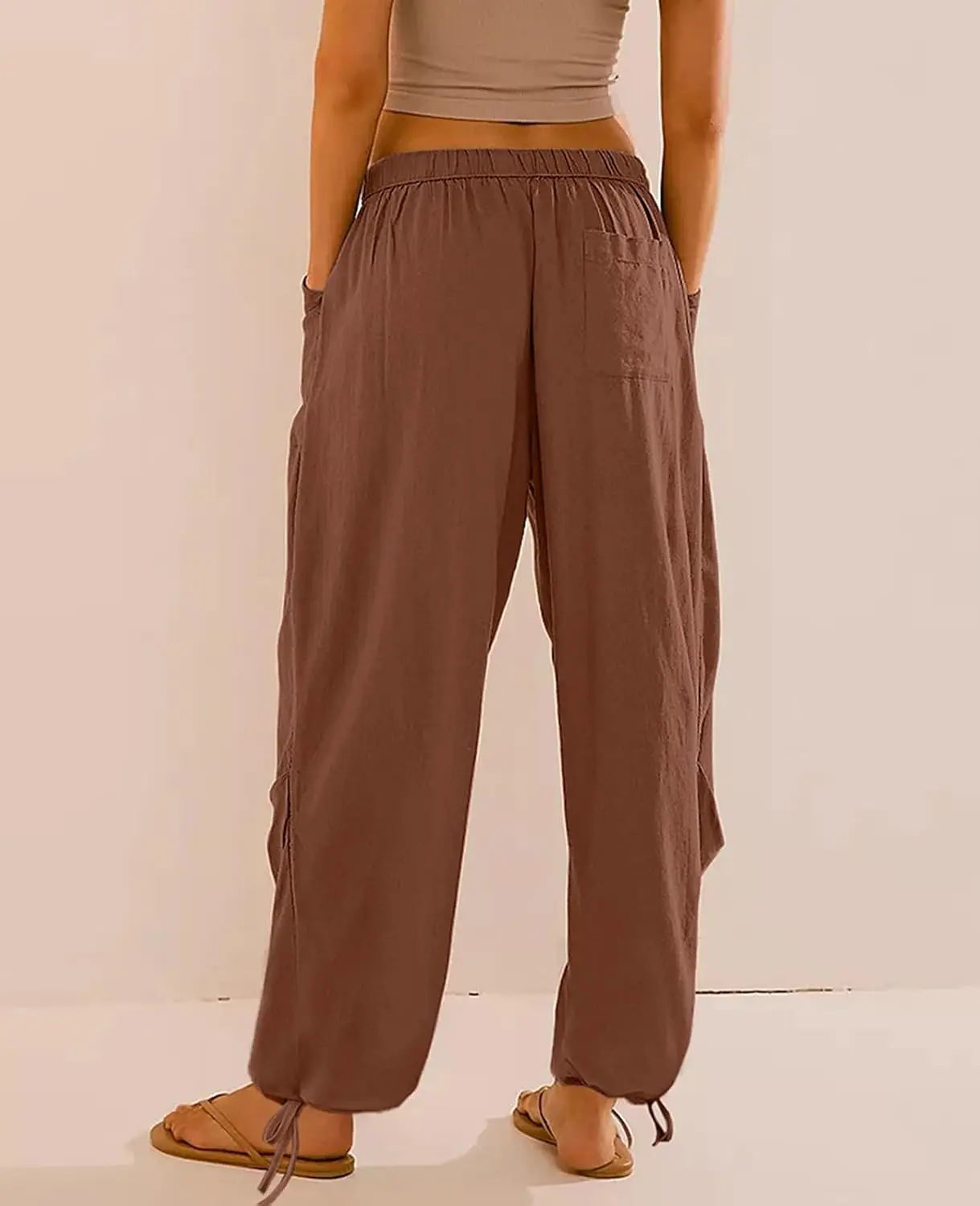 Custom Women Linen Harem Trousers Summer Drawstring Casual High Waist Loose Fit Beach Travel Vacation Pants with Pockets