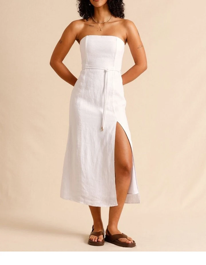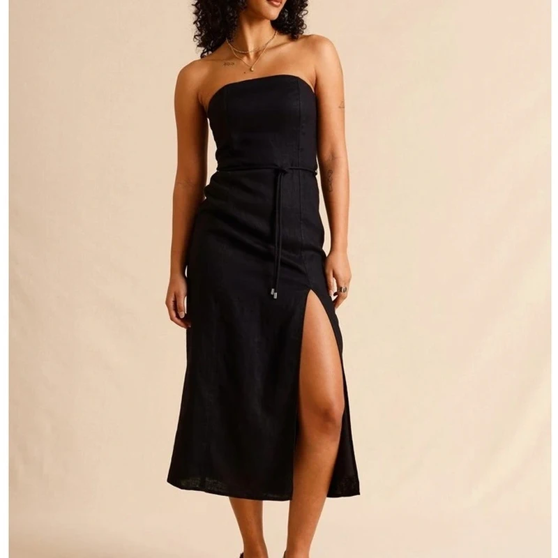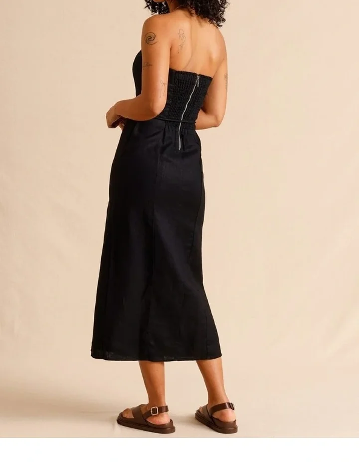Custom Women's Clothing Elegant Summer Evening Party Dress Strapless Backless Long Vestido Linen Strapless Midi Dress in Black