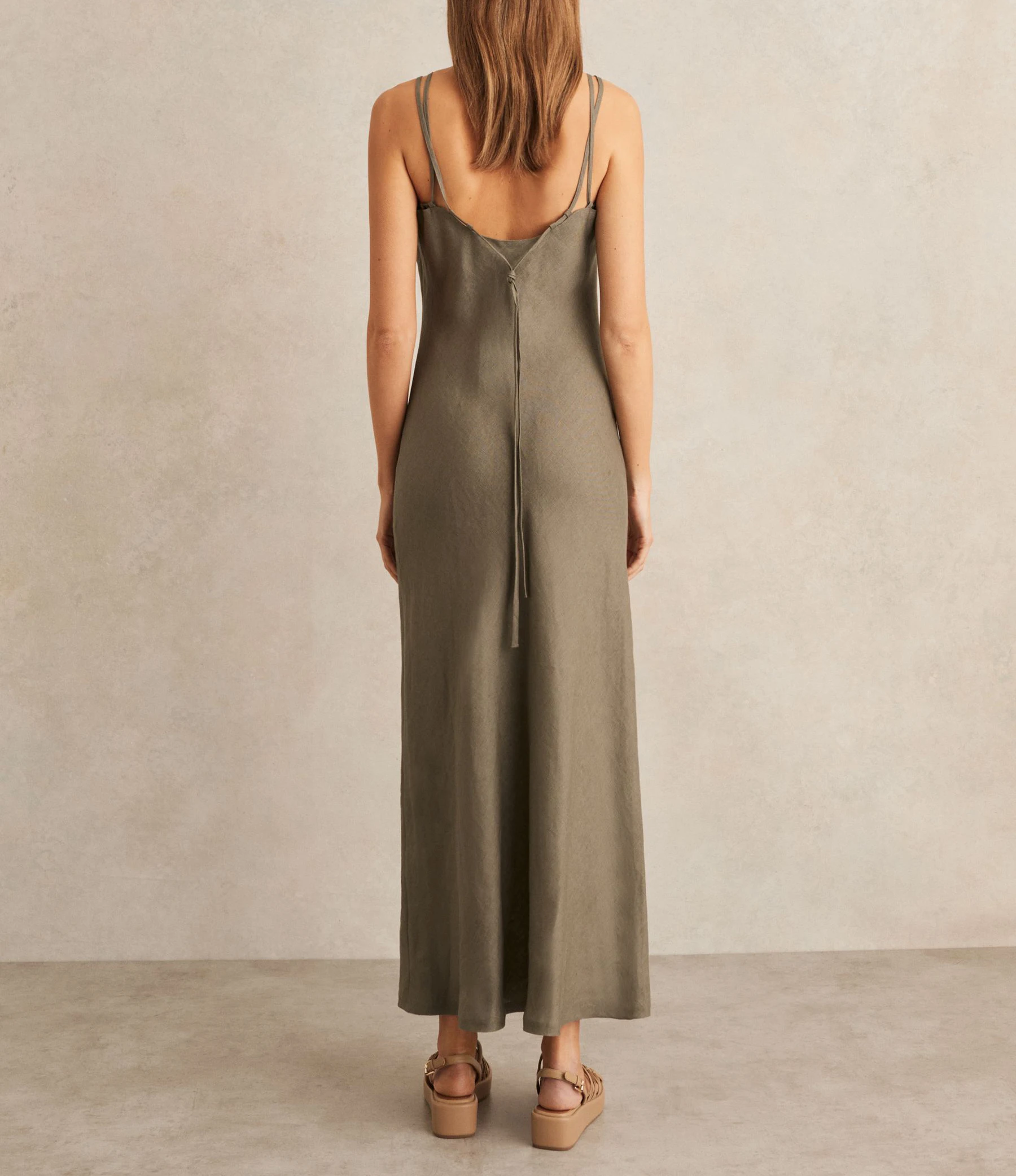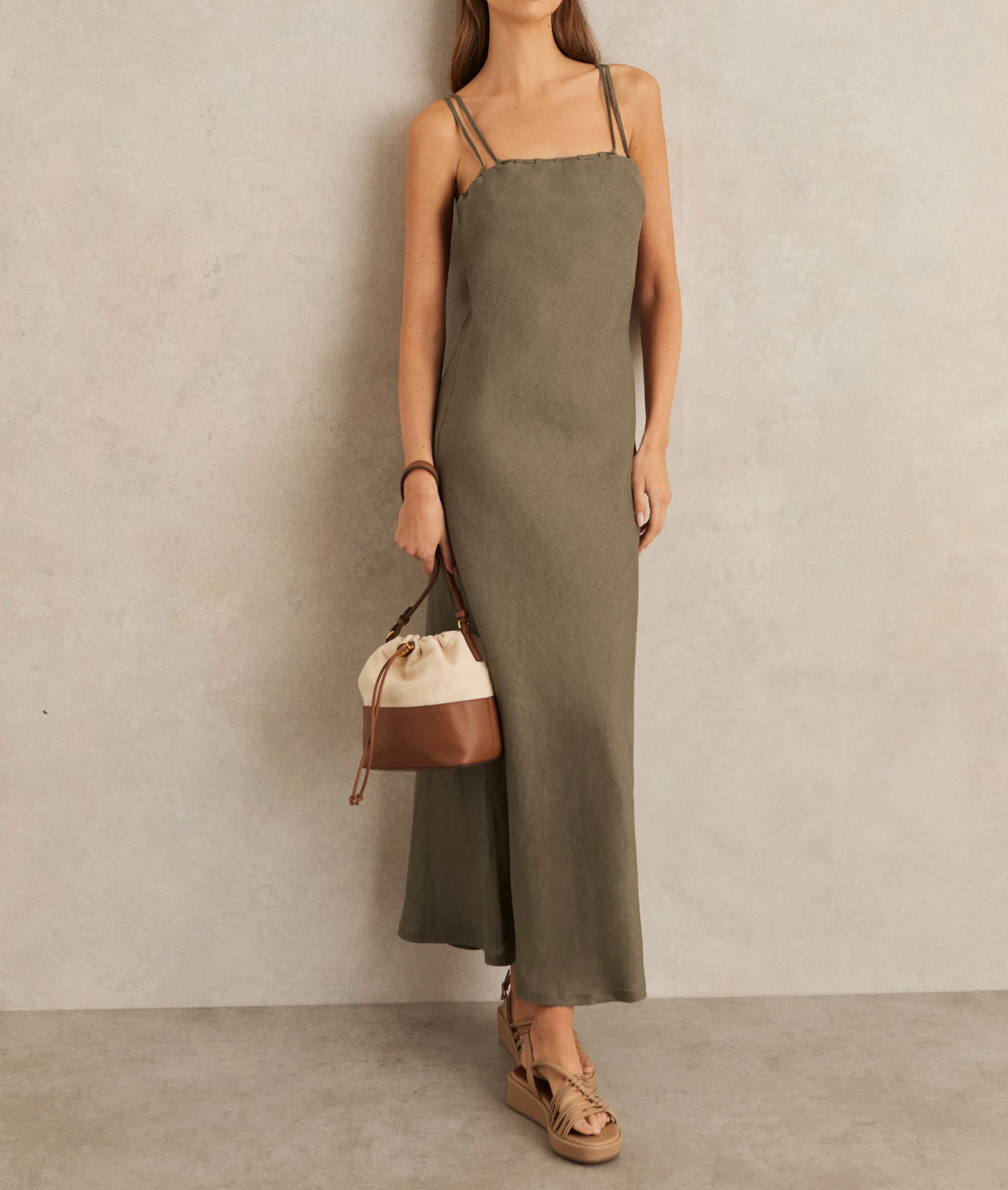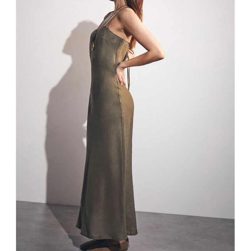 Women's Linen Blended Backless Slip Dress Casual Loose Maxi Dress with Square Collar for Summer Parties Dresses