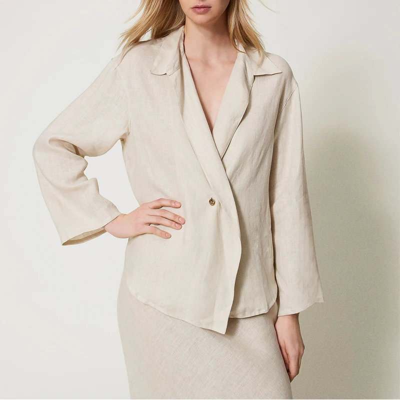 Custom Made Women's Linen Shirt Casual Loose Fit Spring Autumn Long Sleeves Button Linen Cotton Blouse