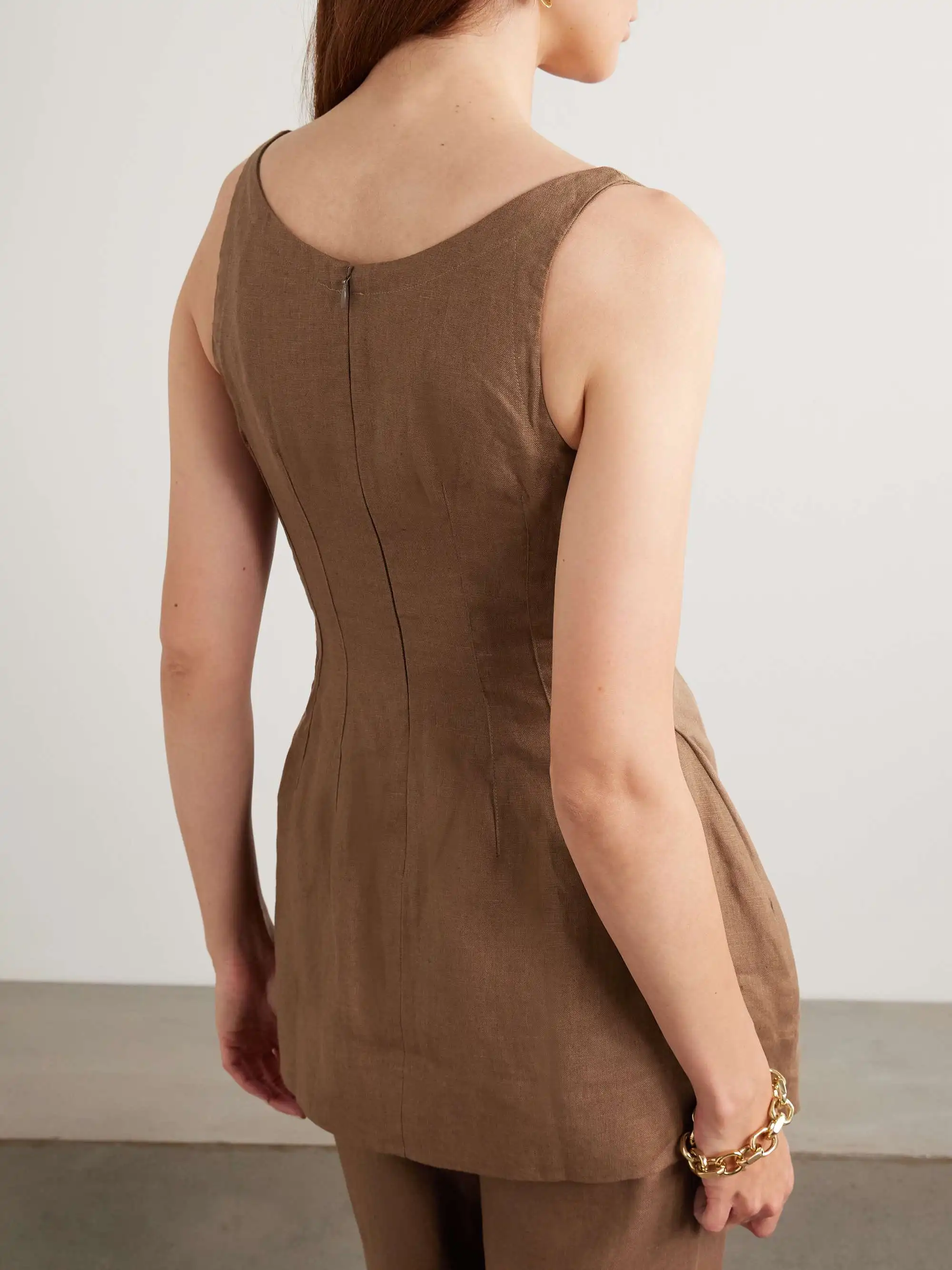 High-End Designer American-Style Women's Summer Vintage Fashion Blouse Sleeveless Linen Fabric Tops