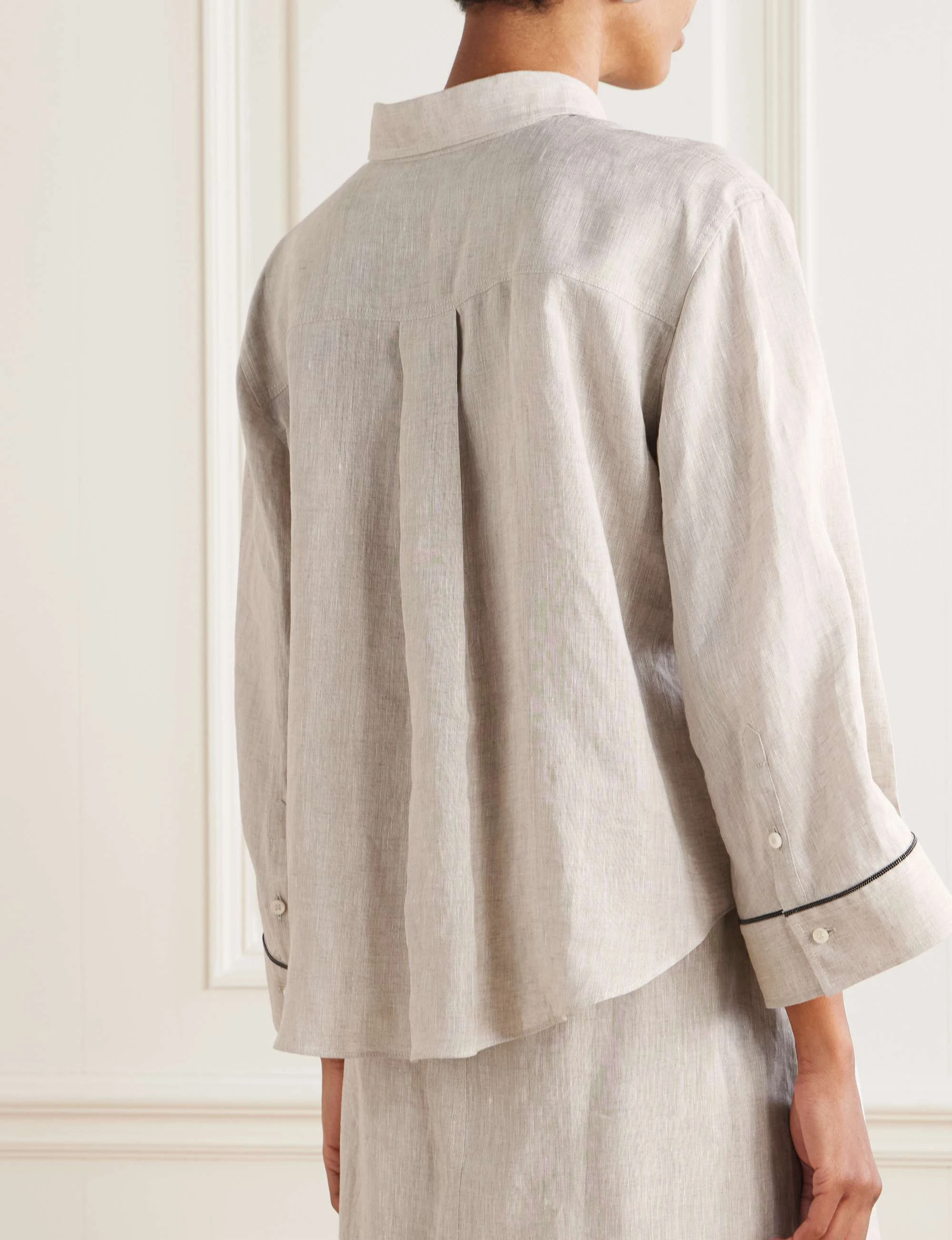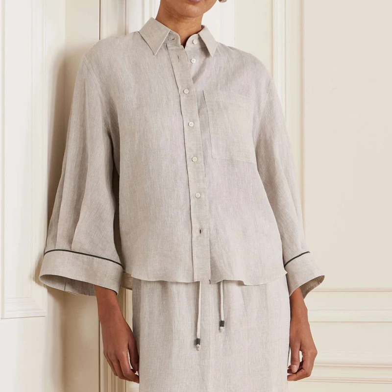 Luxury Womens Clothing Wholesale Loose Ladies Clothes Blouse 100% Linen Clothes Bead-embellished Linen Shirt for Women
