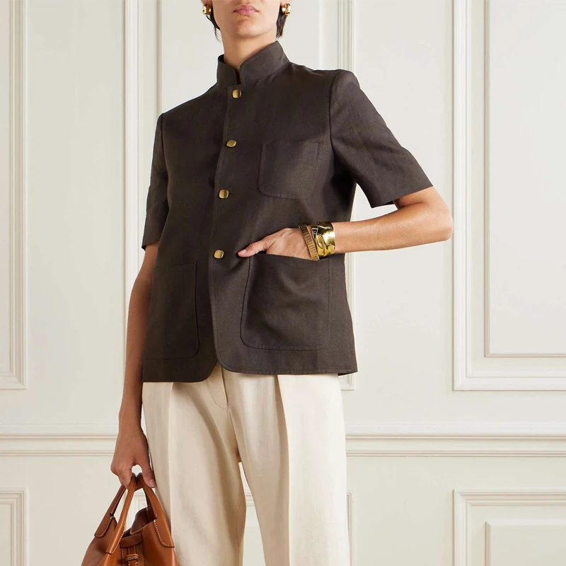 ZYHT 15545 Women's Blouses & Shirts Mint Green Tweed Blazer with Puff Sleeves & Peplum Fit Button-Detail Long Sleeve Jacket