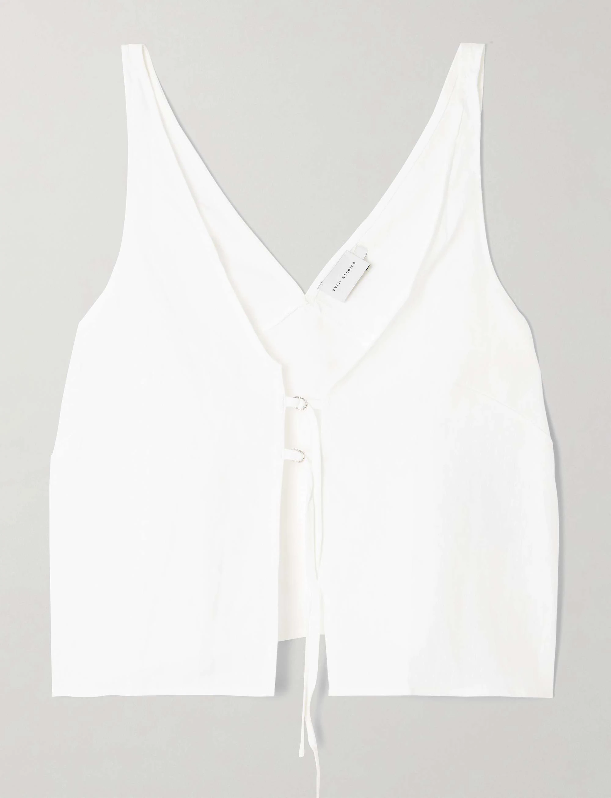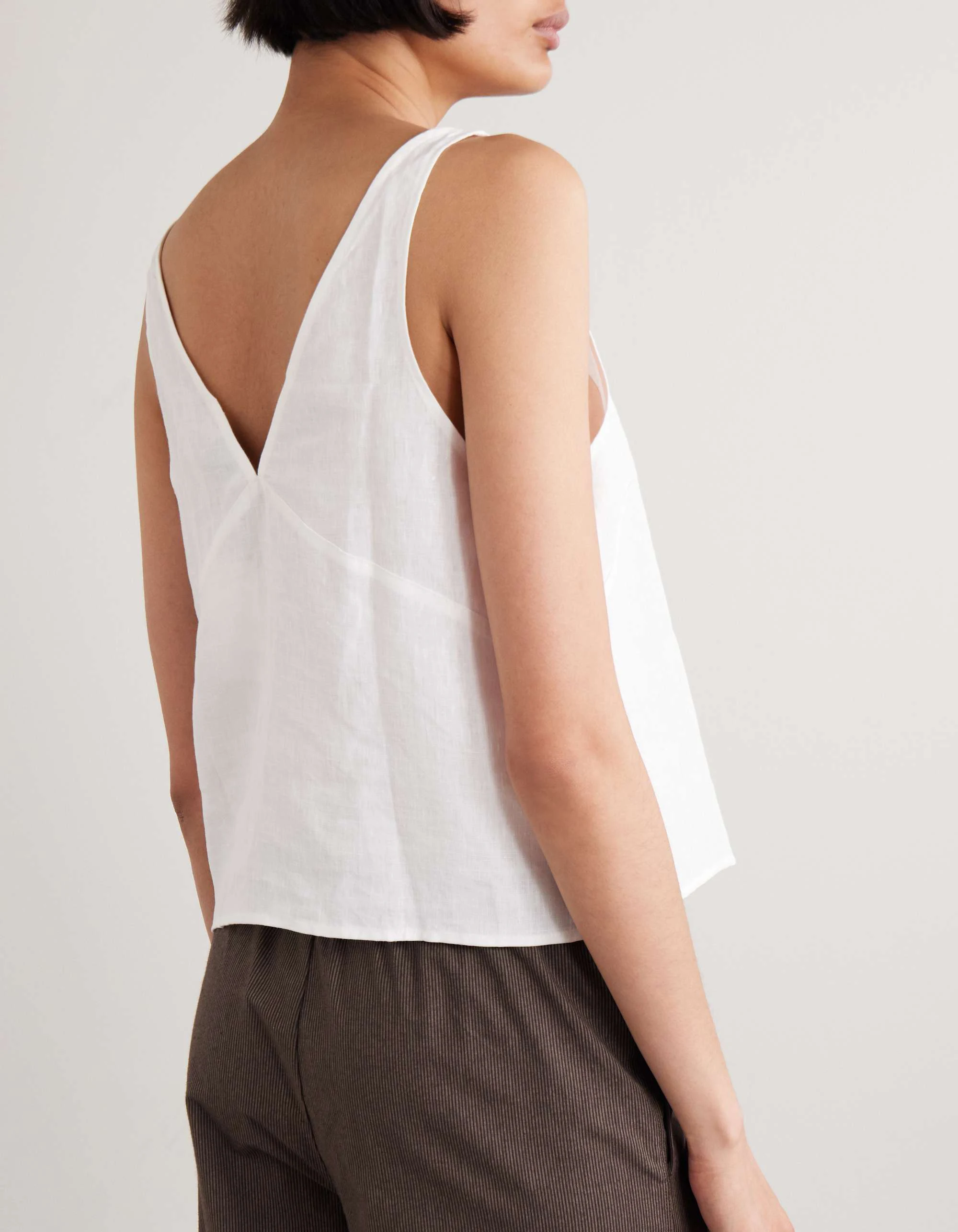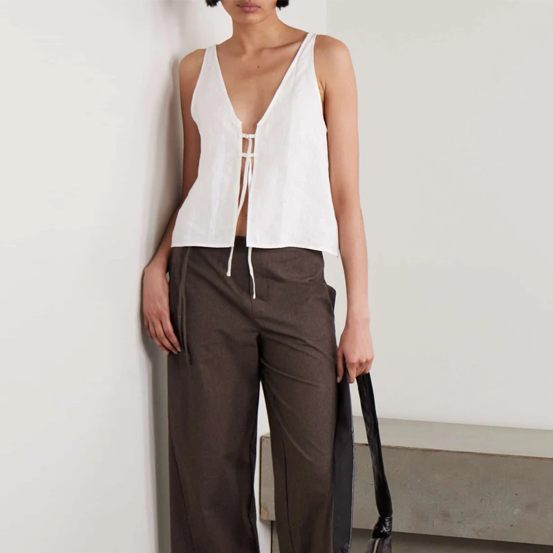 Handmade Linen Tank Top Sweet Style V-Neck C Blouse Natural Plain Dyed Hand Breathable Summer Camisole Bow Collar