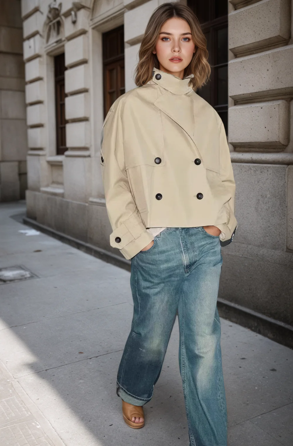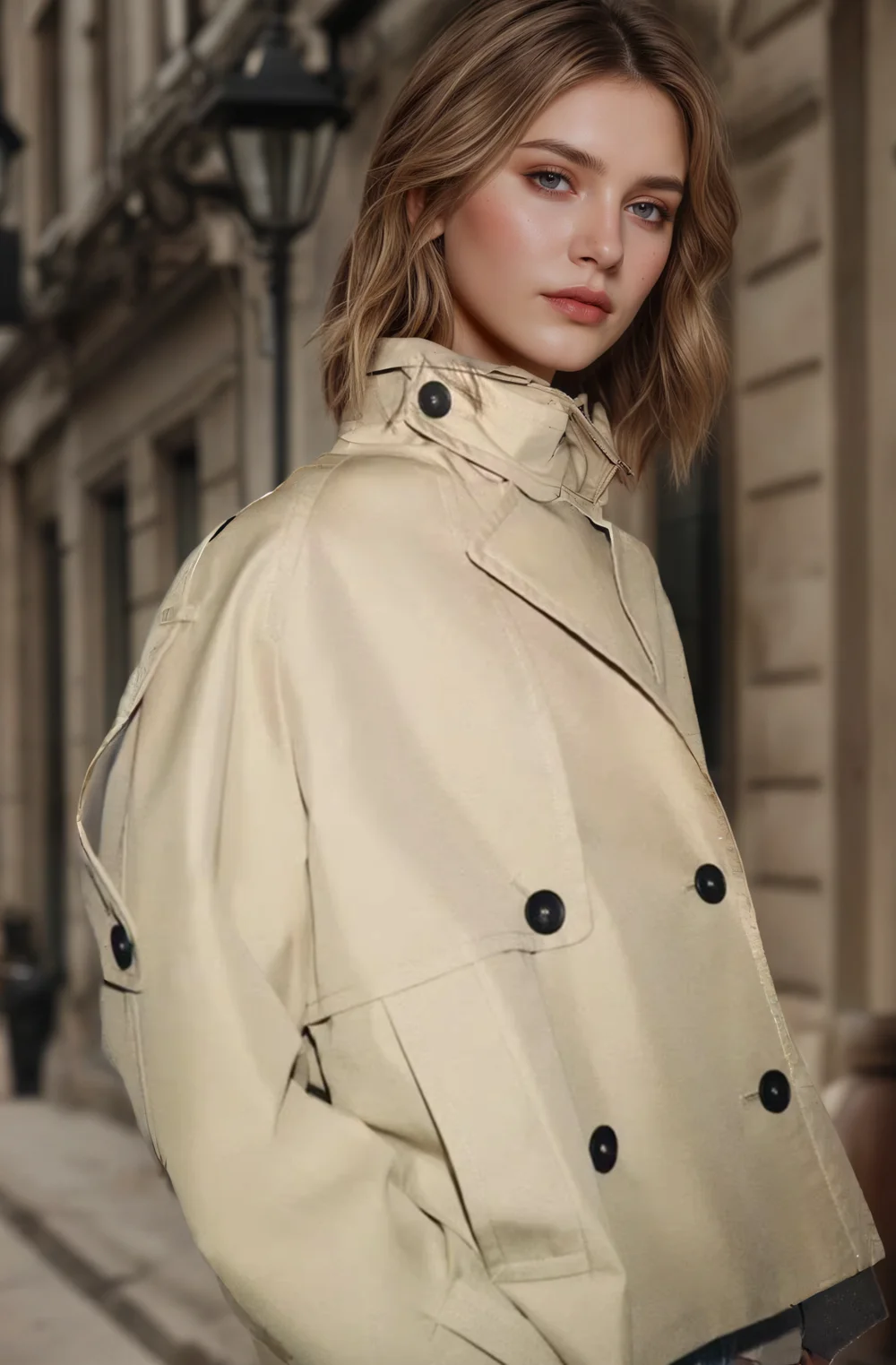 2026 Fall New Fashion European Style Women's Fashionable Elegant Loose-Fit Water-Resistant Short Trench Coat