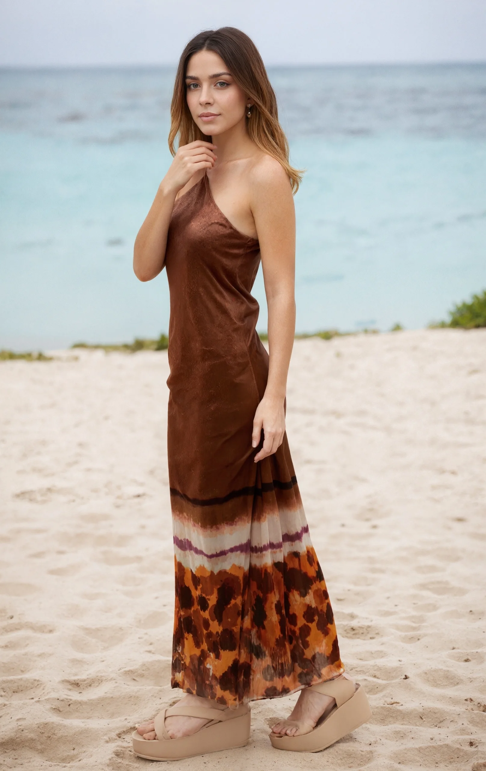 ZYHT 73957 Hot Selling Women Lady Printed Satin Beige Mermaid Fish Tail Floor Length Party Cocktail Evening Dress Gown