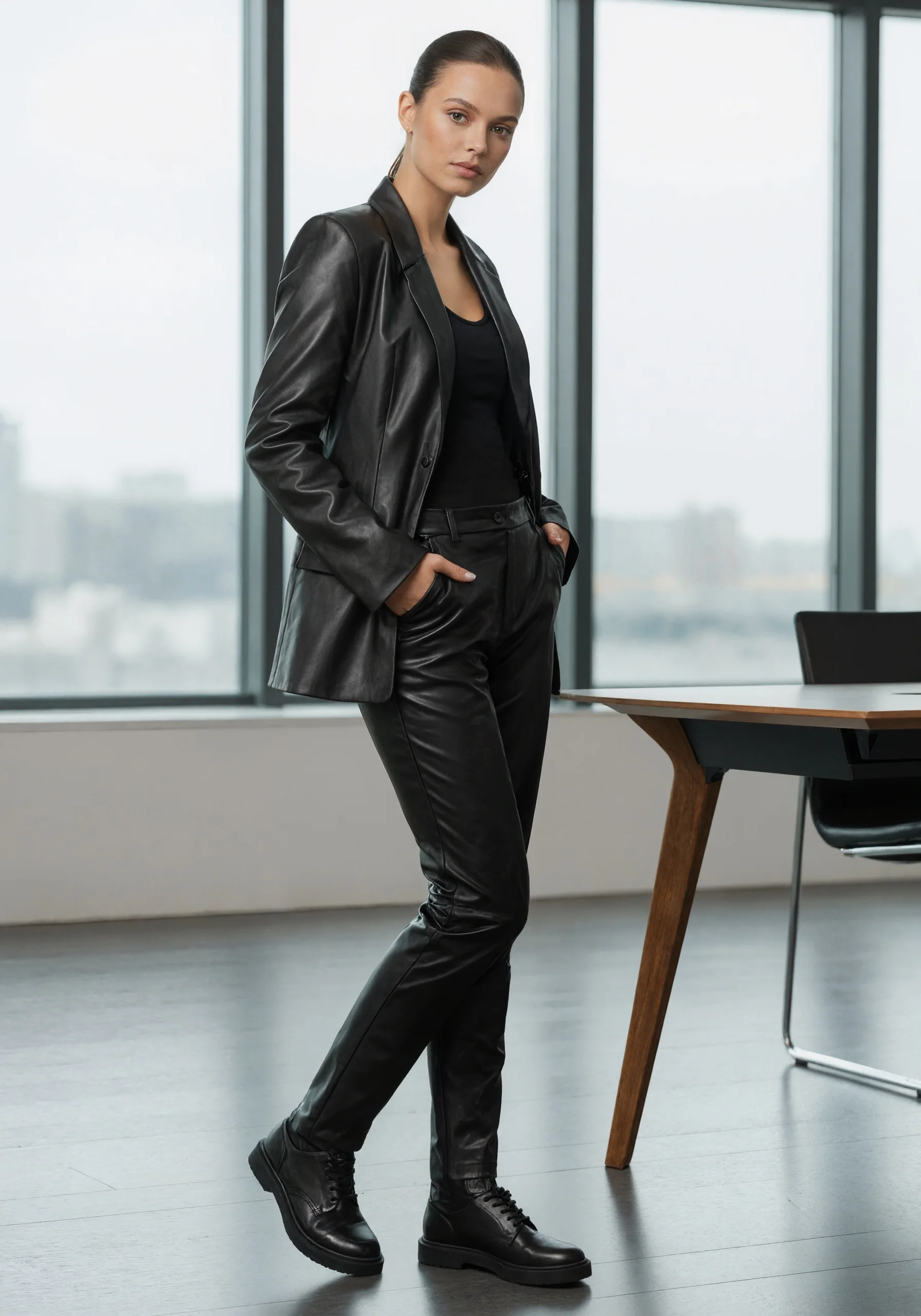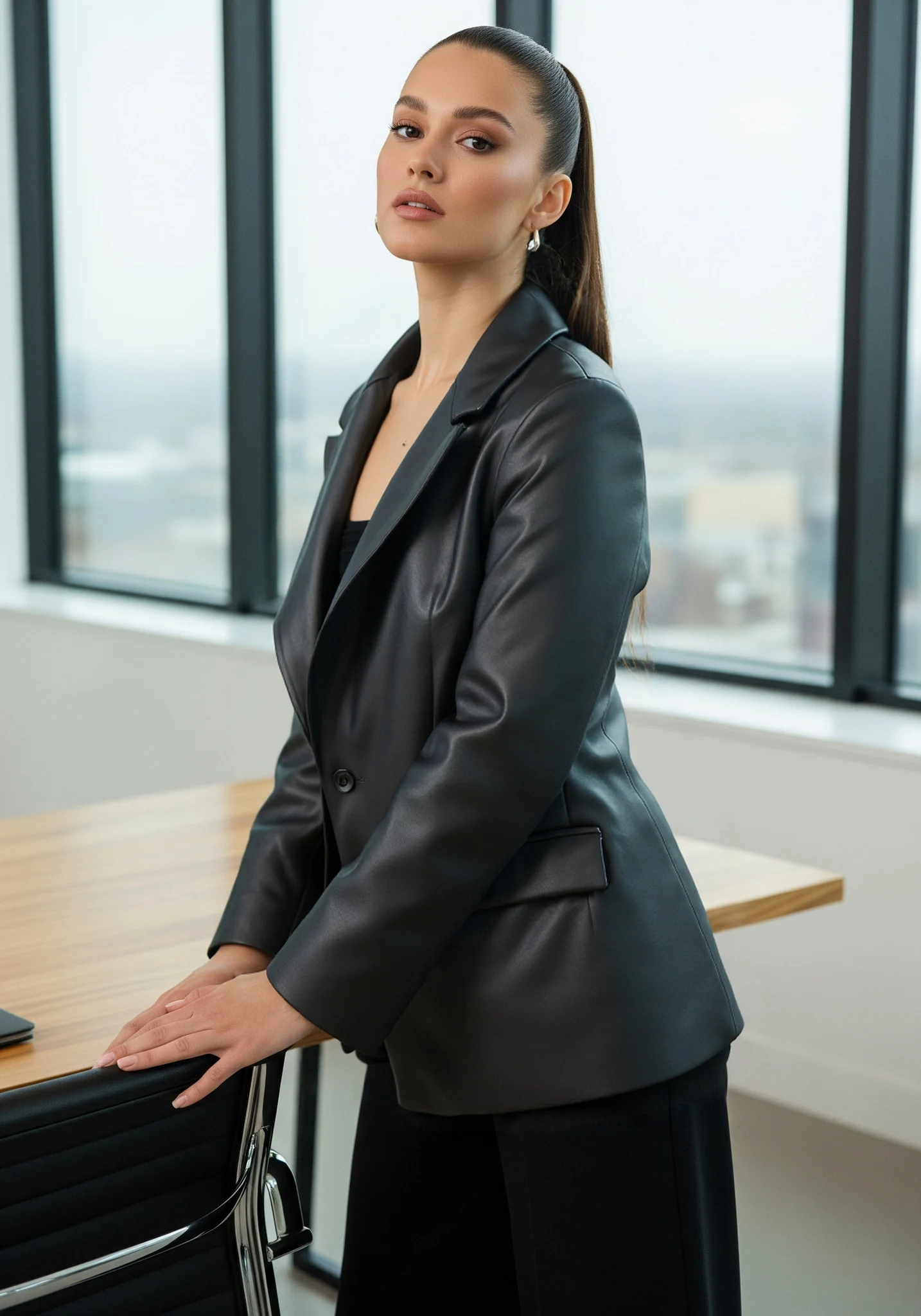 Vintage Hot Sale Fashion Trendy Mid Length Vintage Women Leather Jacket Oversize Black Pu Fabric Blazer