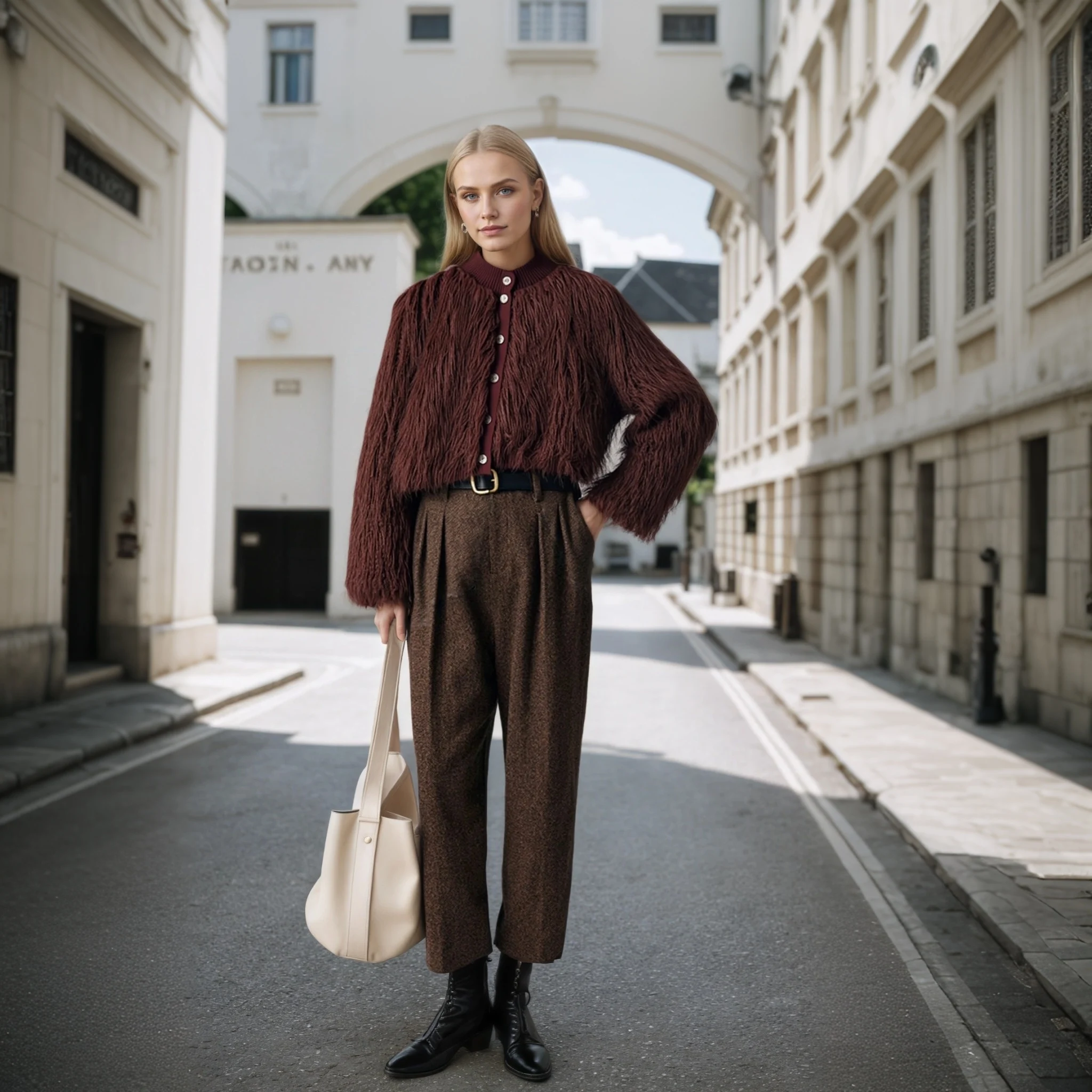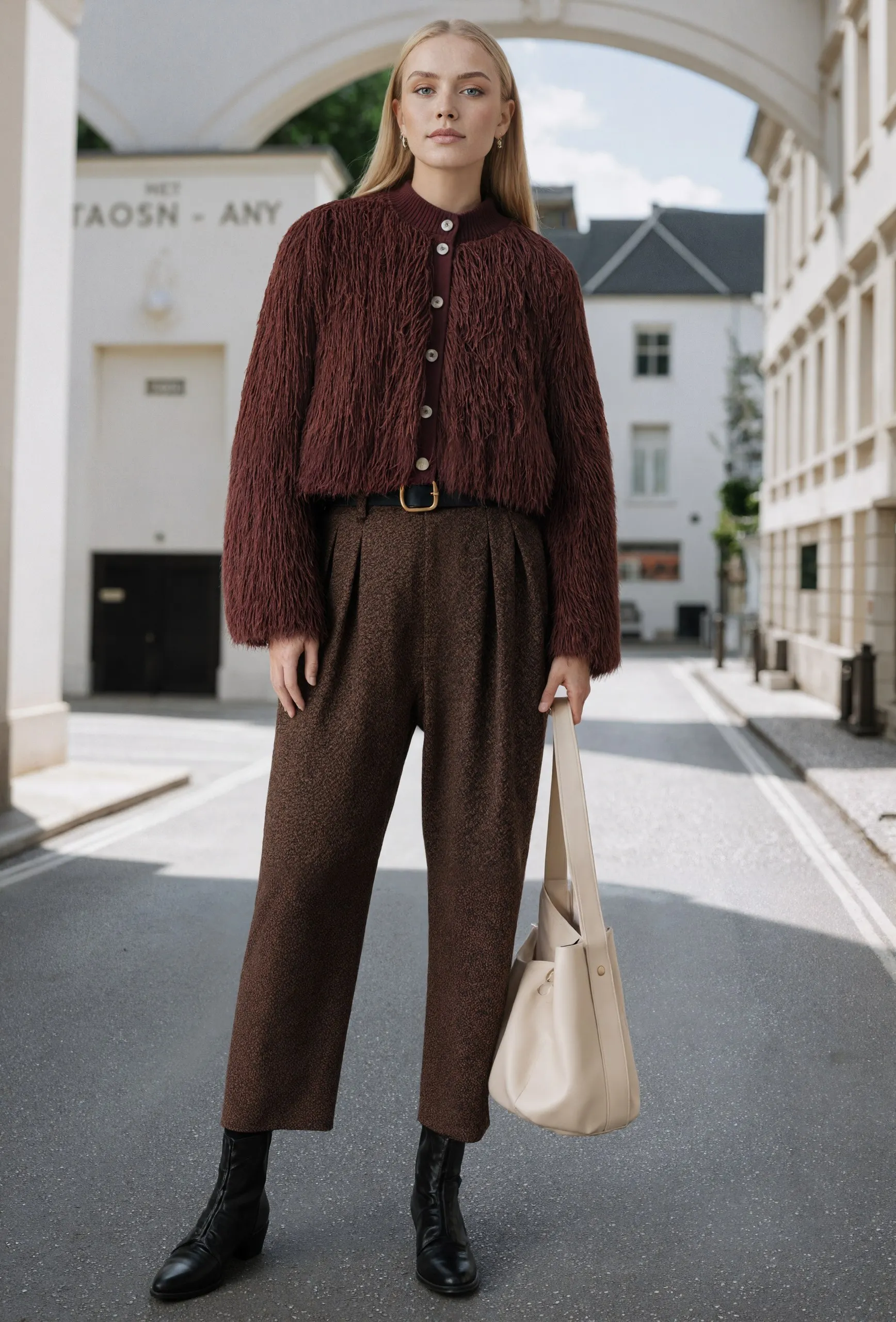 Fashion Women's Autumn New European Casual Loose Long Sleeve Long-Haired Stand Collar Jacket