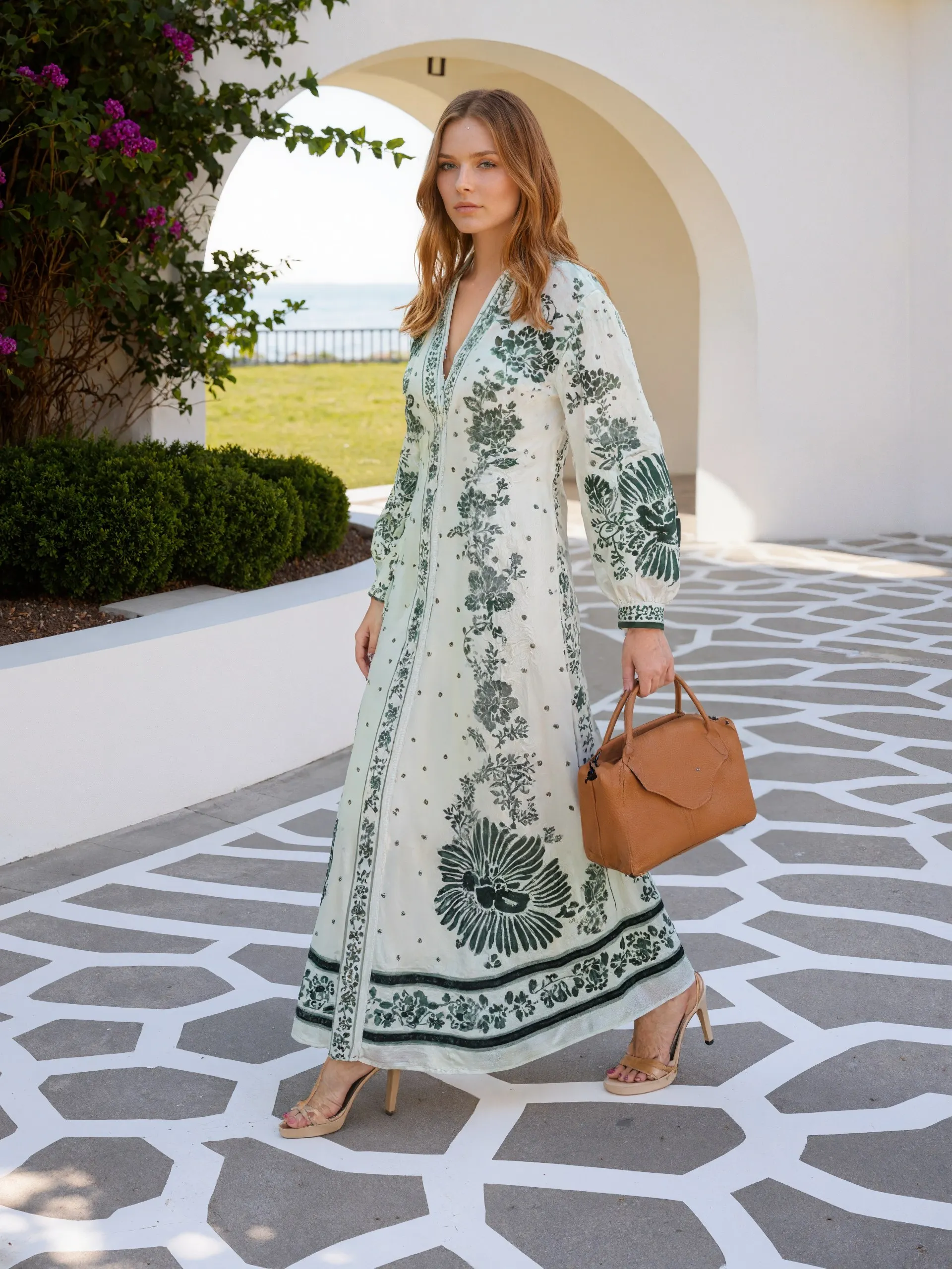 2026 Hot Selling Women Flower Printed Dress Loose Button V Neck Lantern Sleeve Casual Dress Holiday Long Elegant Dress