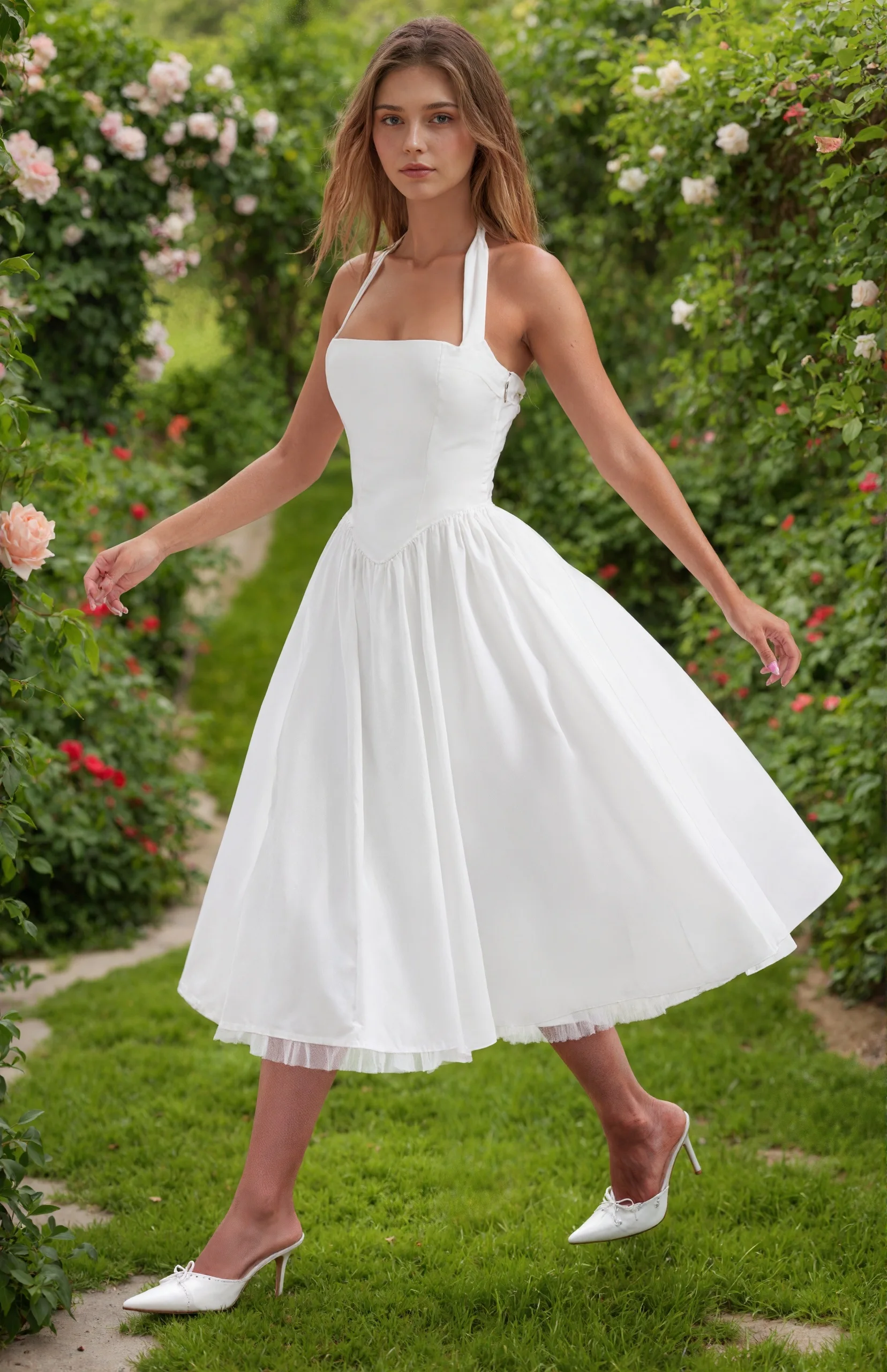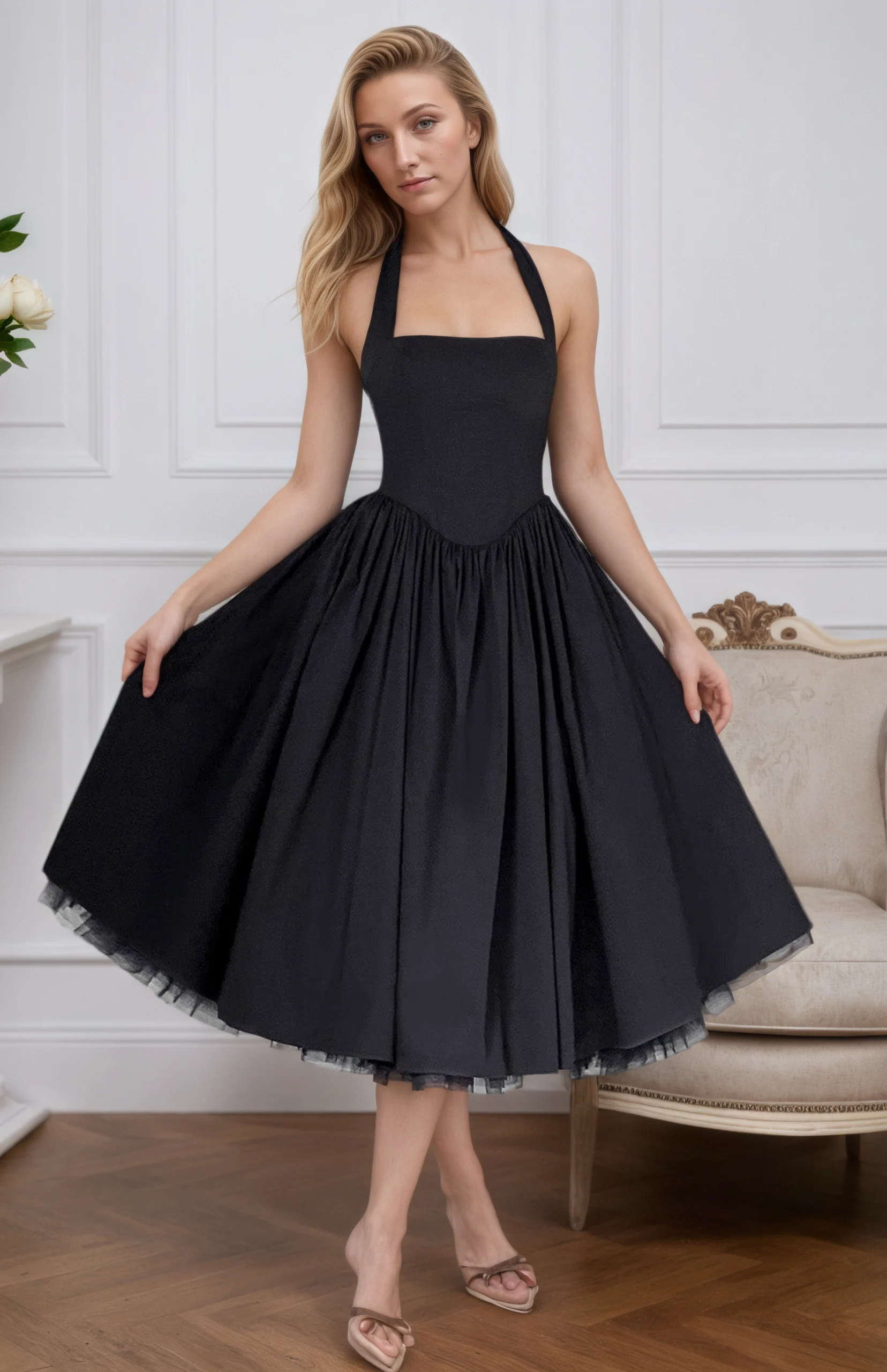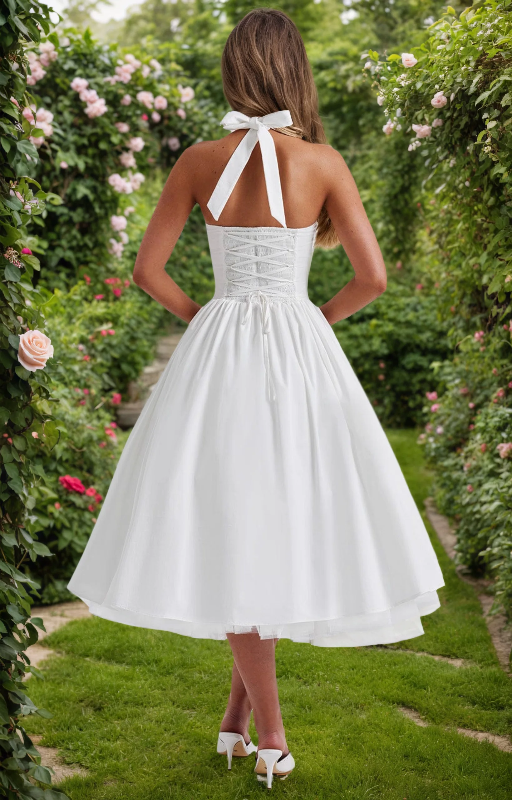 2026 European and American Halter White Halter New Evening Dress Puff Skirt Solid Color Lace up Women's Dress