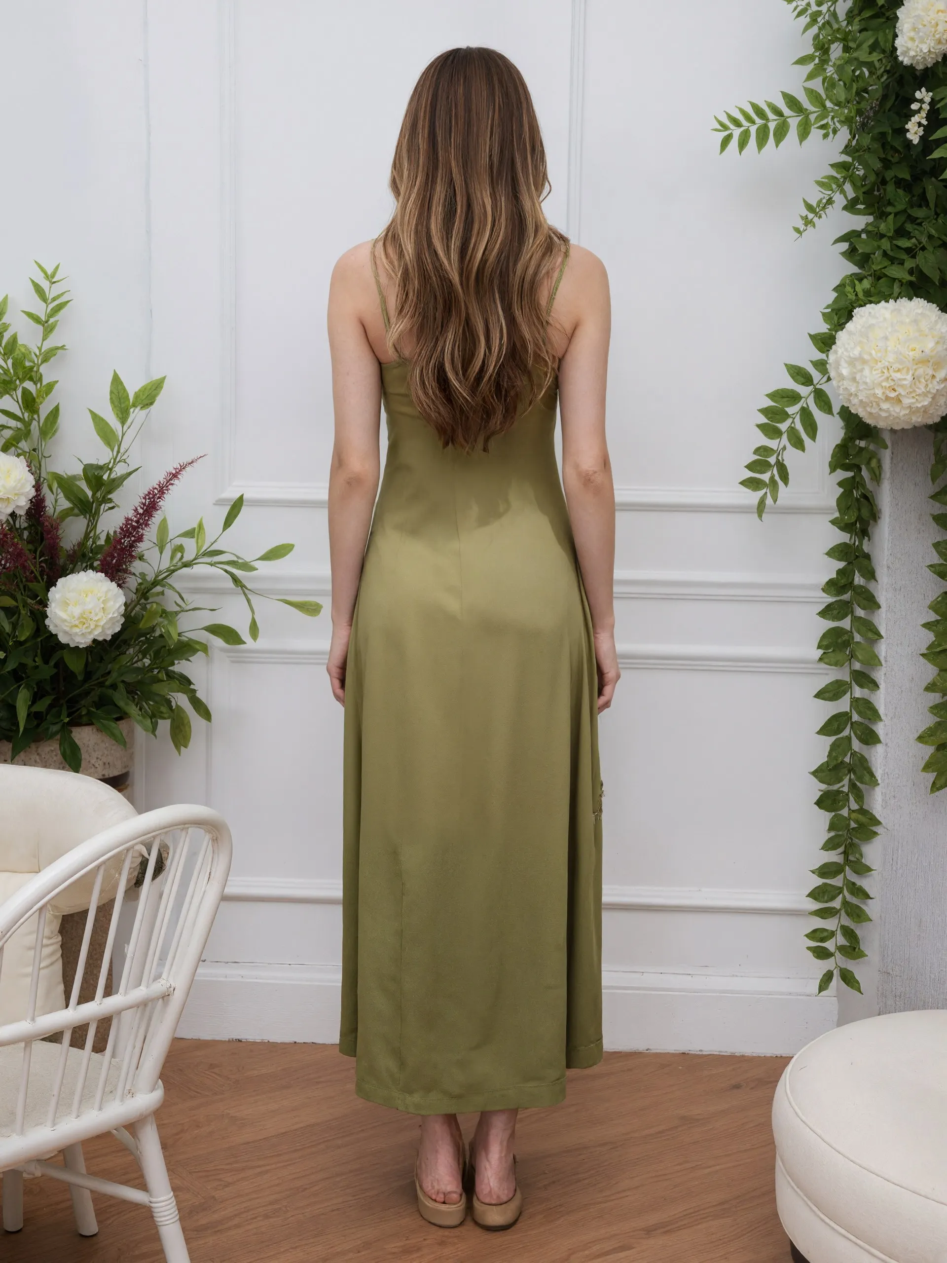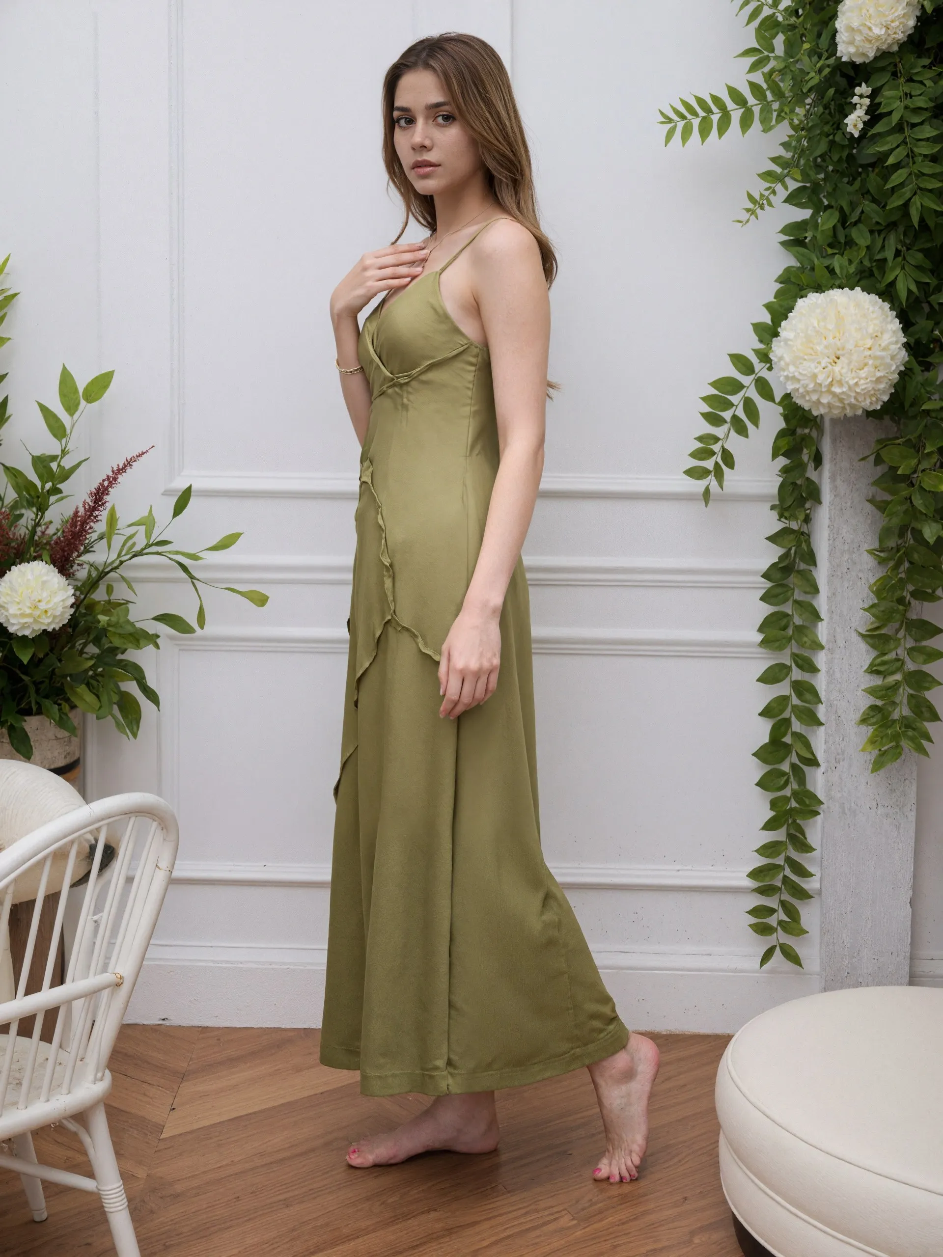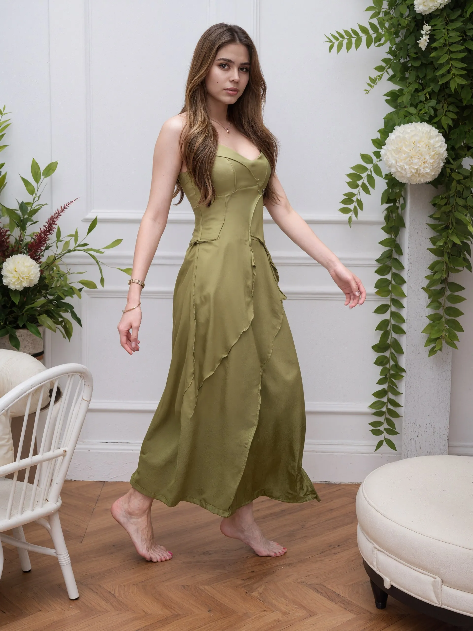 2026 Autumn New Arrival Thin Shoulder Strap Adjustable V-neck Fashionable Drape Splicing Suspender Long Dress
