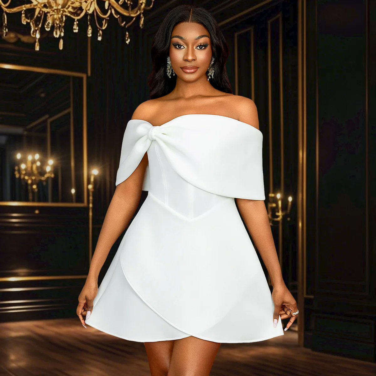 Evening Dress for Girls Short Strapless A-Line White Sweet Tube Girls Dresses for Bridesmaid
