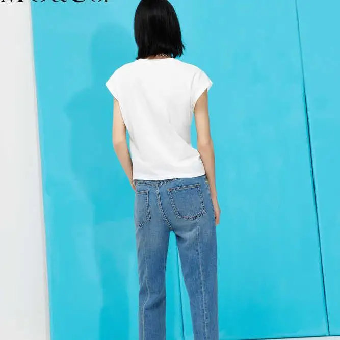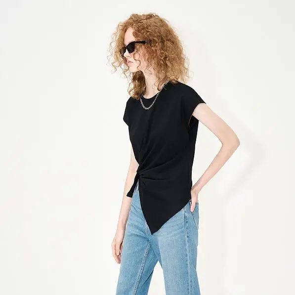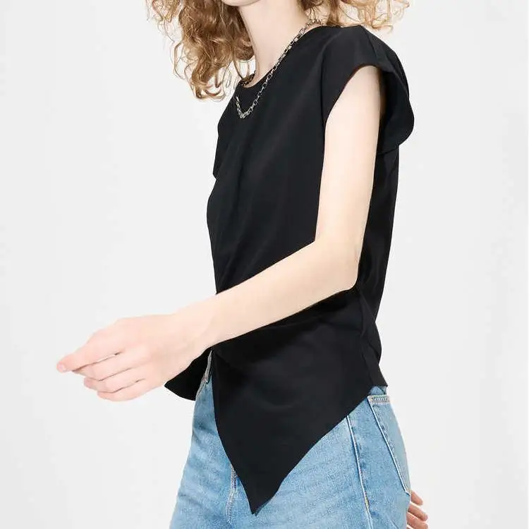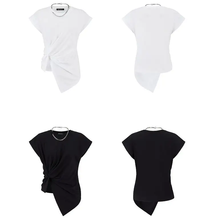 Elegant Summer Women's Sleeve Tops Casual Neck T-Shirt Irregular Hem Metal Chain Decorative Solid Color Anti-Pilling Compressed