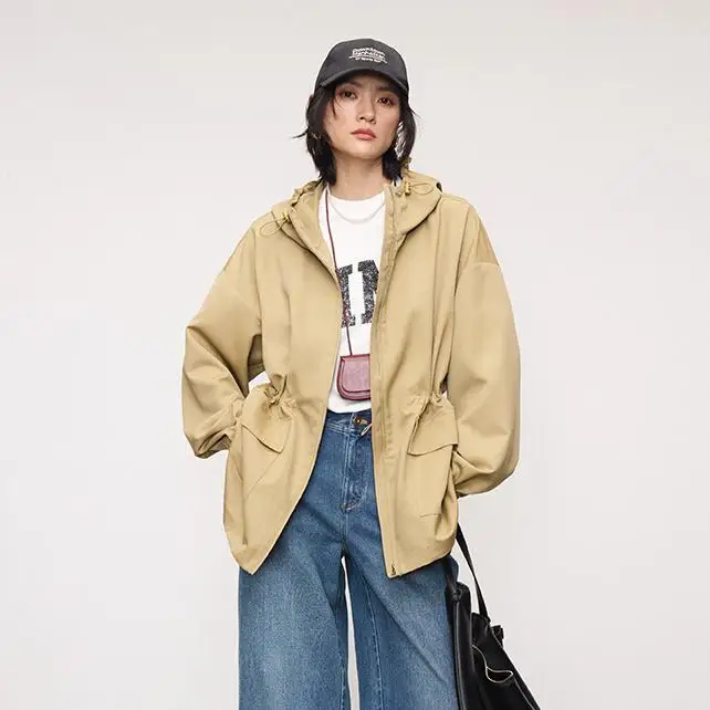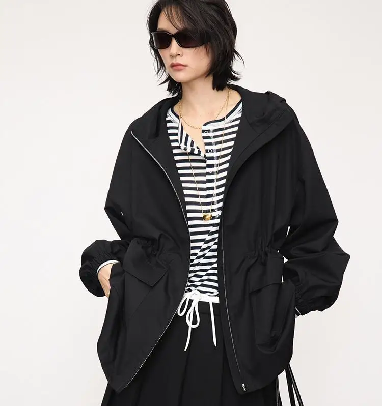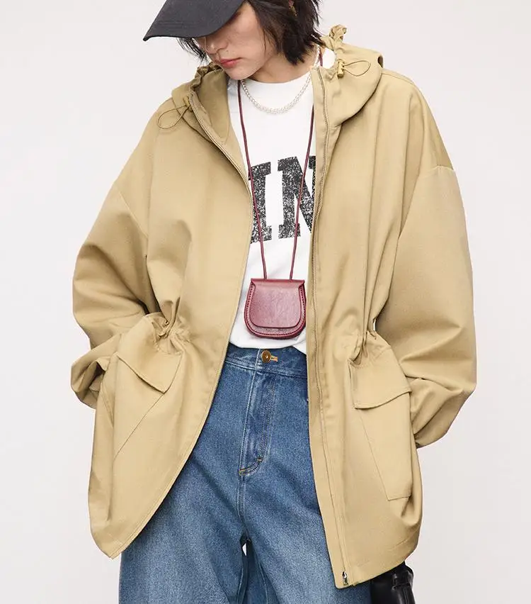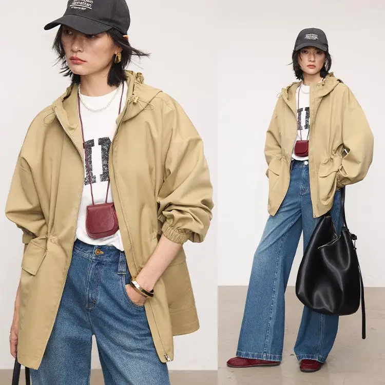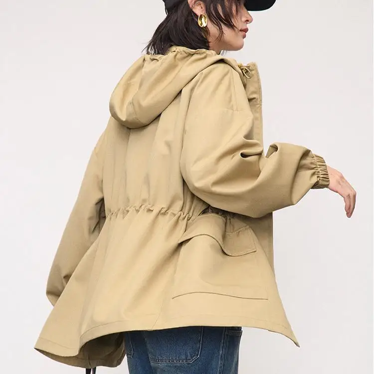 High Quality Polyester Hooded Jacket Coat with Drawstring Waist Long Sleeves Coat Waterproof Casual Outerwear Coat for Winter