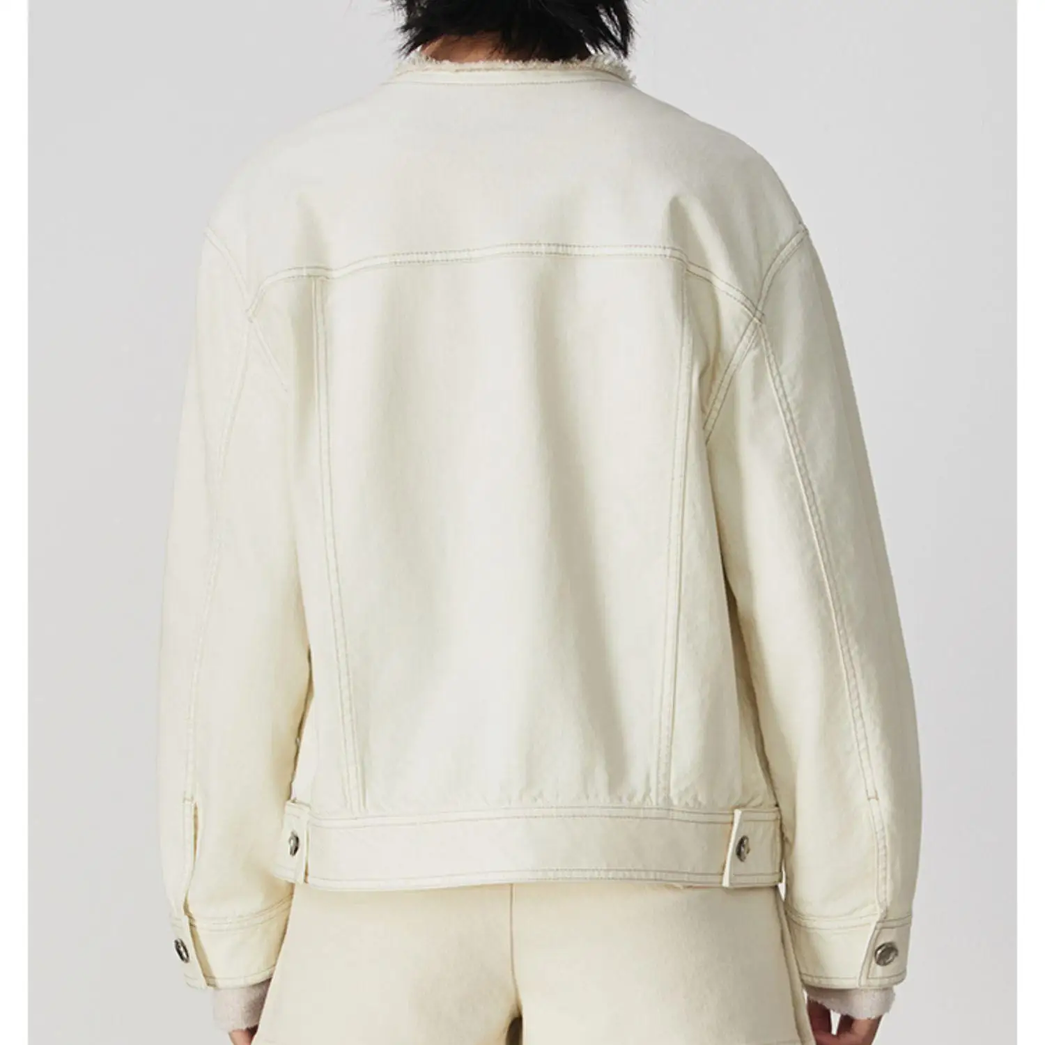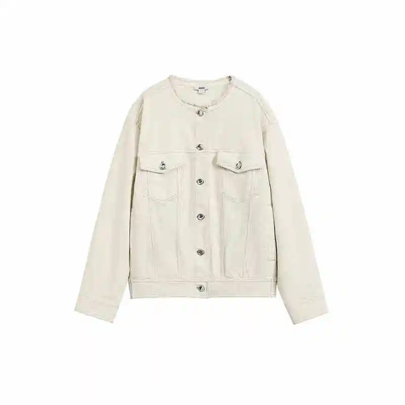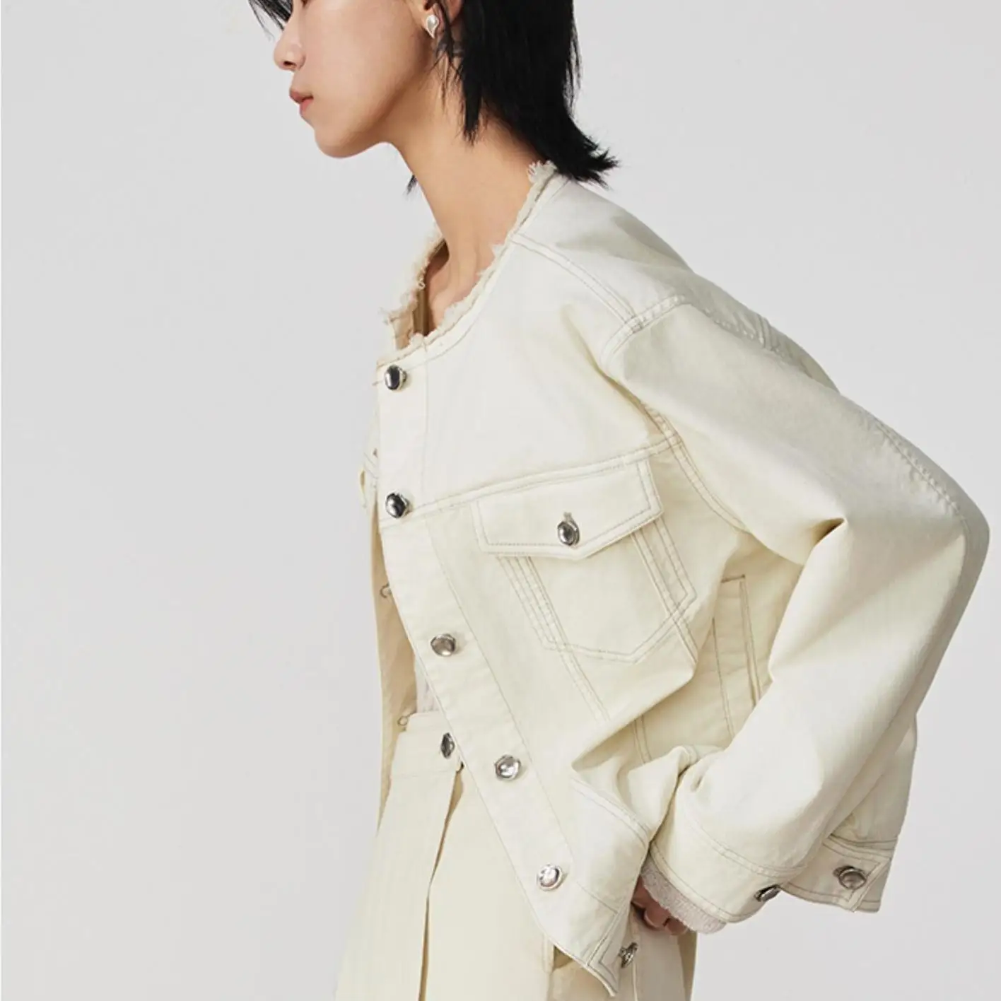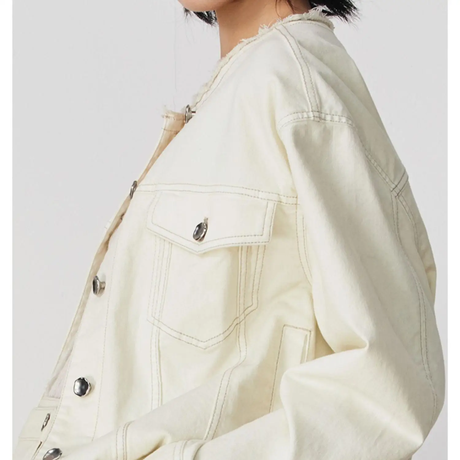 Custom Loose Casual White Demin Coat Spring Fashion Women Jacket Coat With Pockets