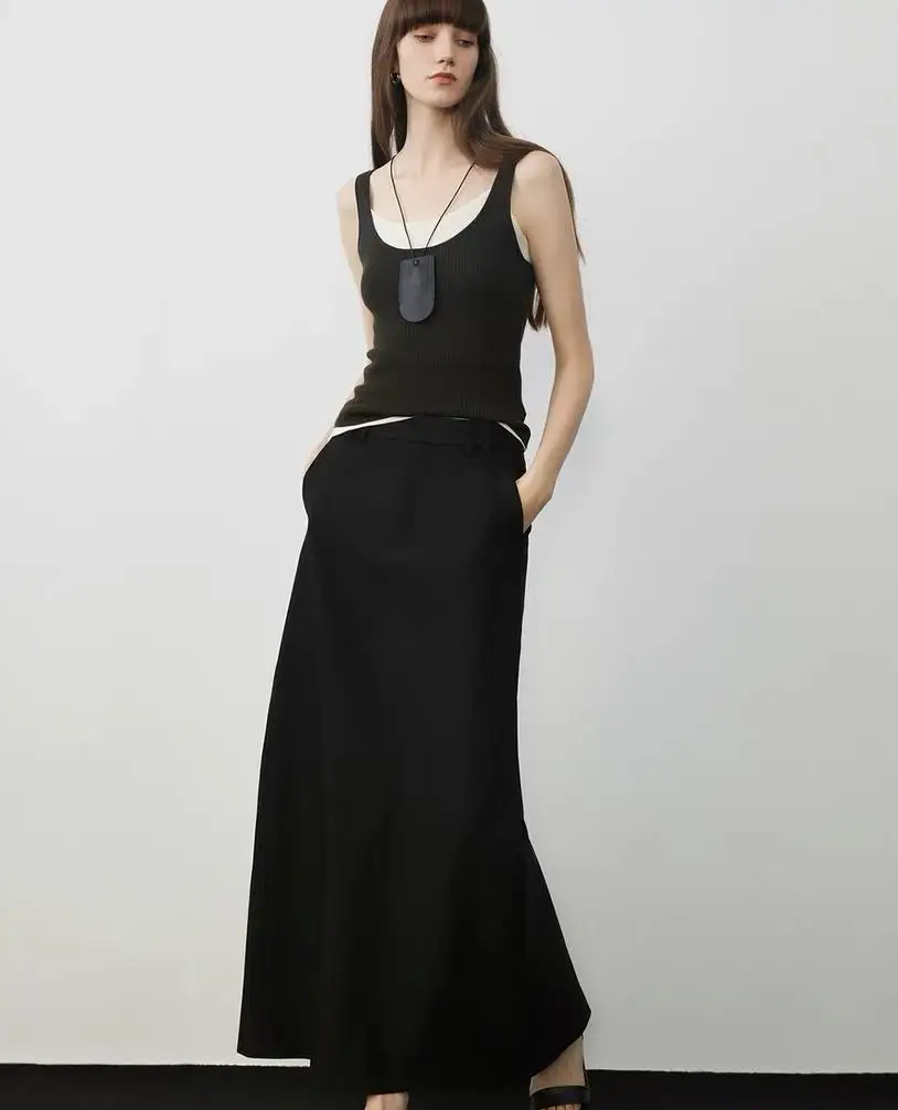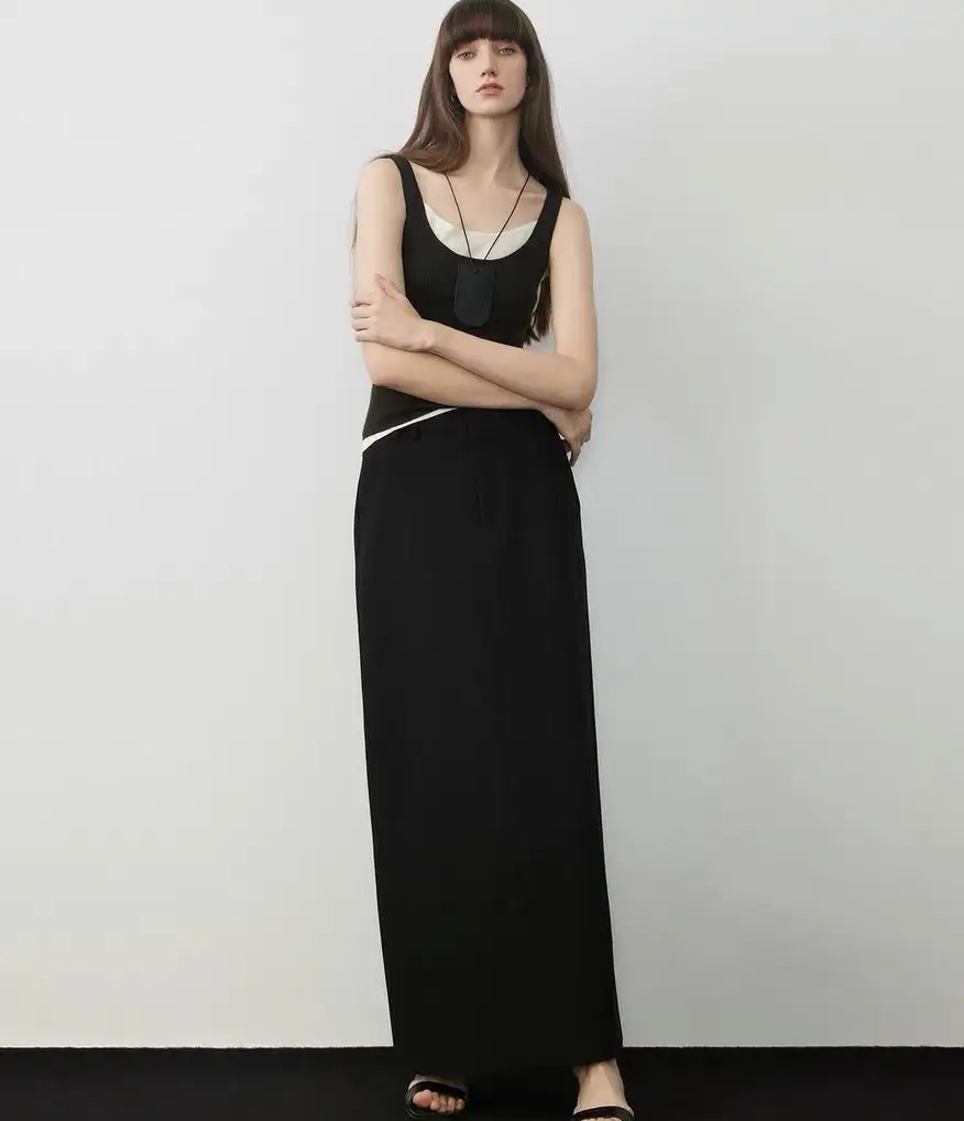 Custom Trendy Side Pocket Suits Maxi Skirt Casual Women Long Skirt Two Piece Set Camisole Long Skirt for Ladies
