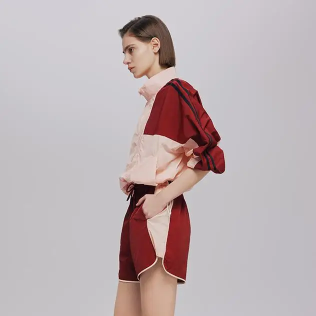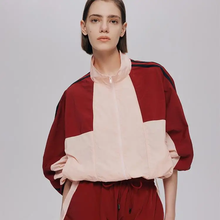 Custom Stand up Collar Patchwork Jacket Casual Polyester Lightweight Coat Windbreaker Zipper Coat
