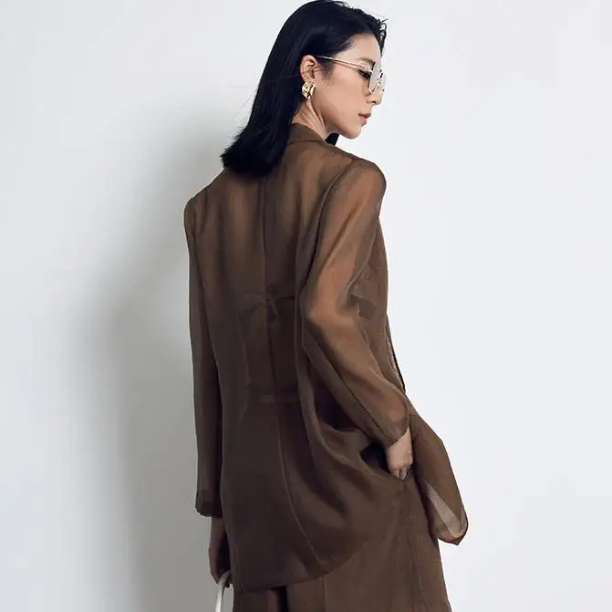 Custom Women Singal Breasted Long Sleeve Blazer Loose Coat With Pockets Female Outerwear Fashion Blazer Jacket