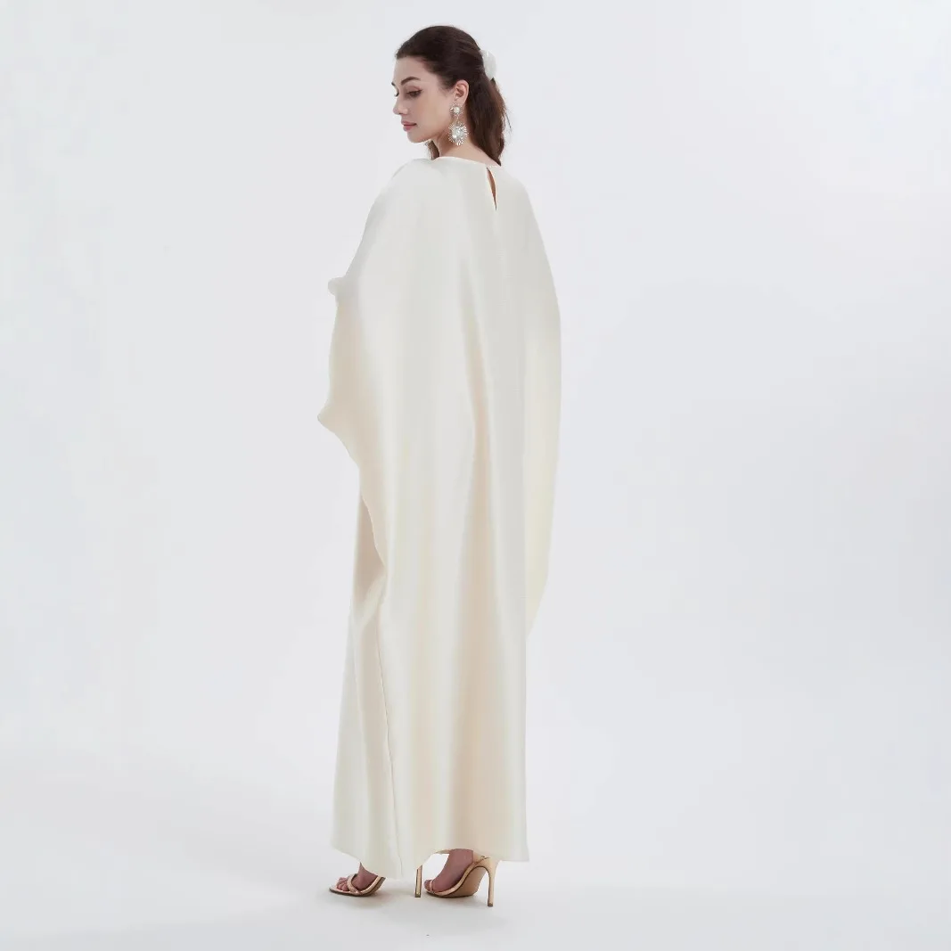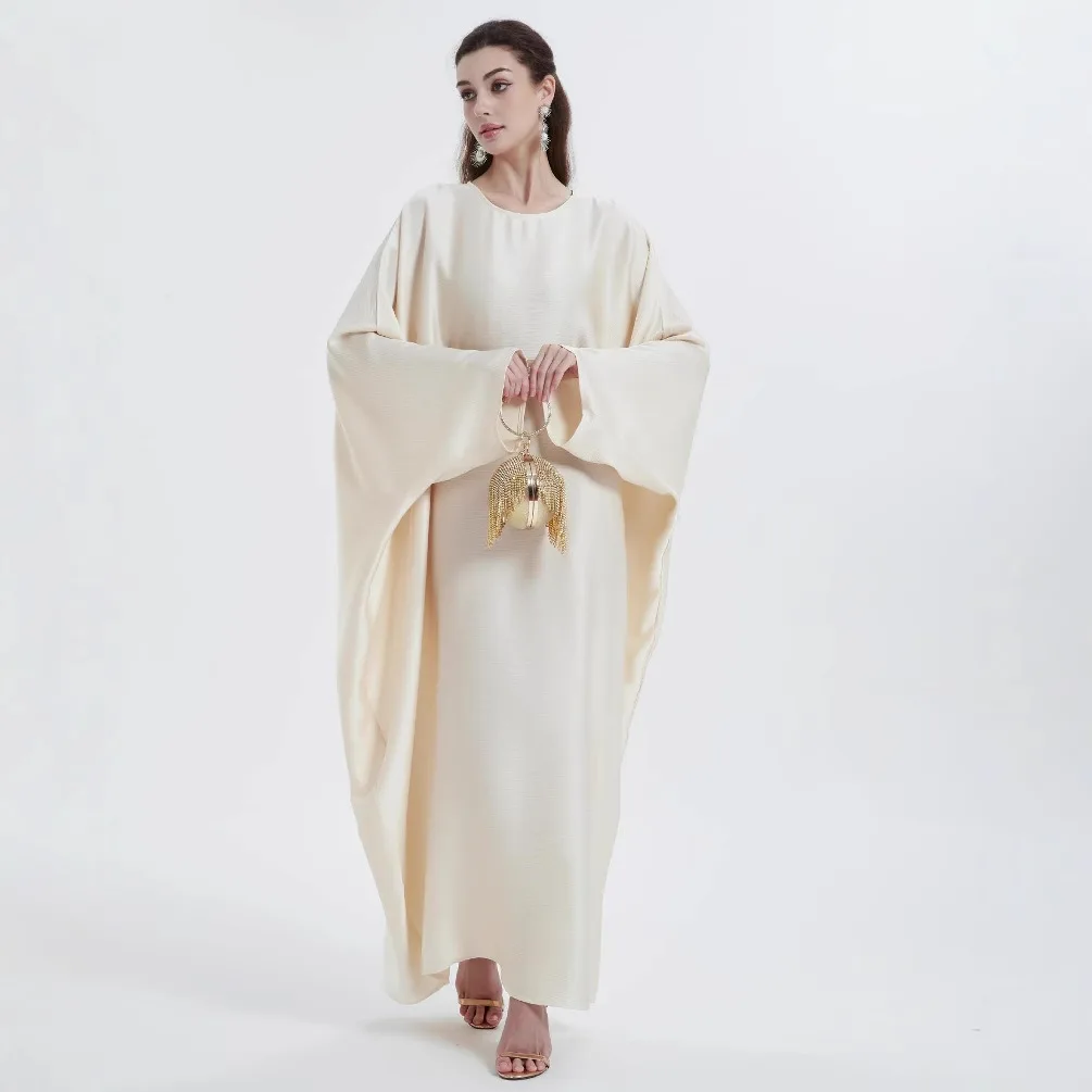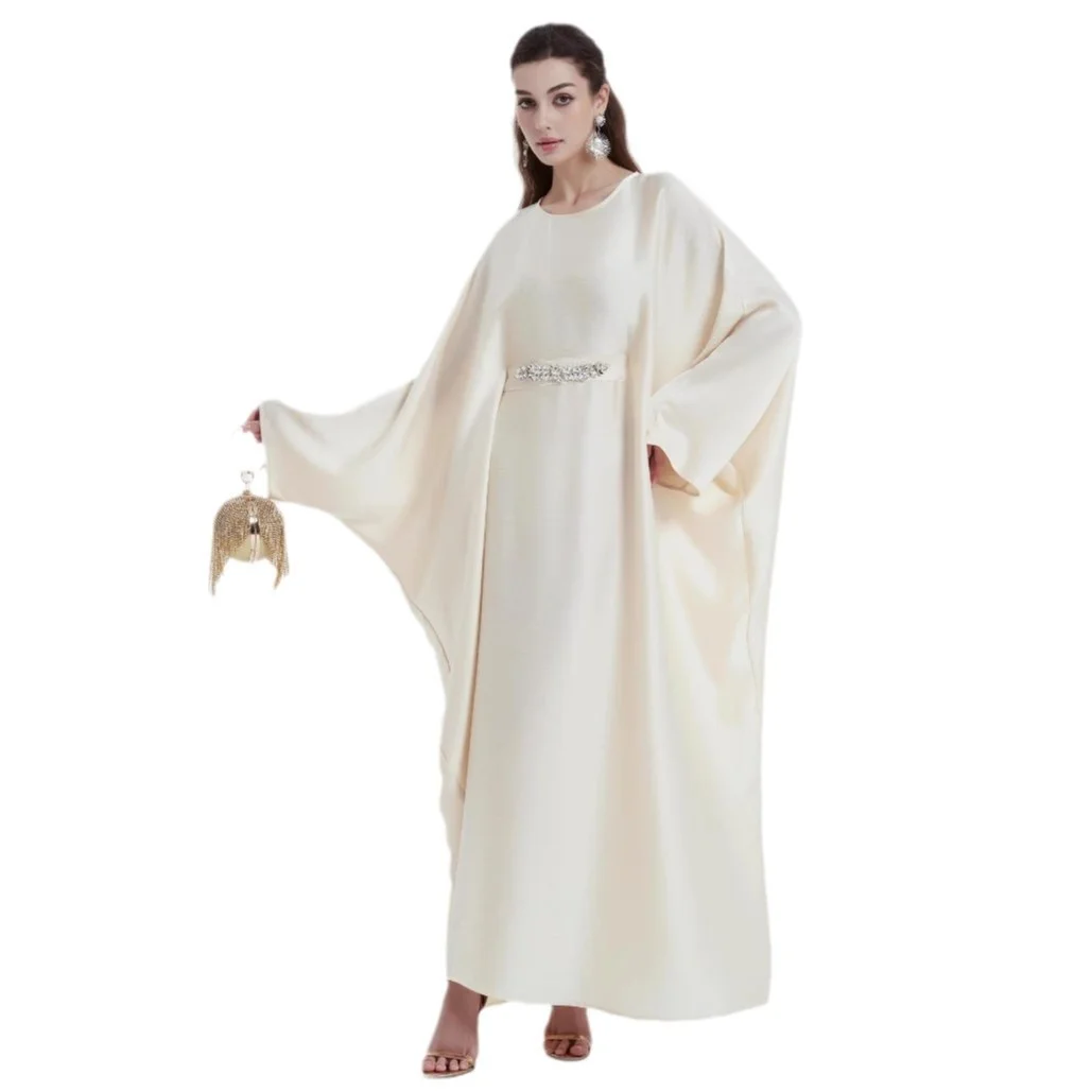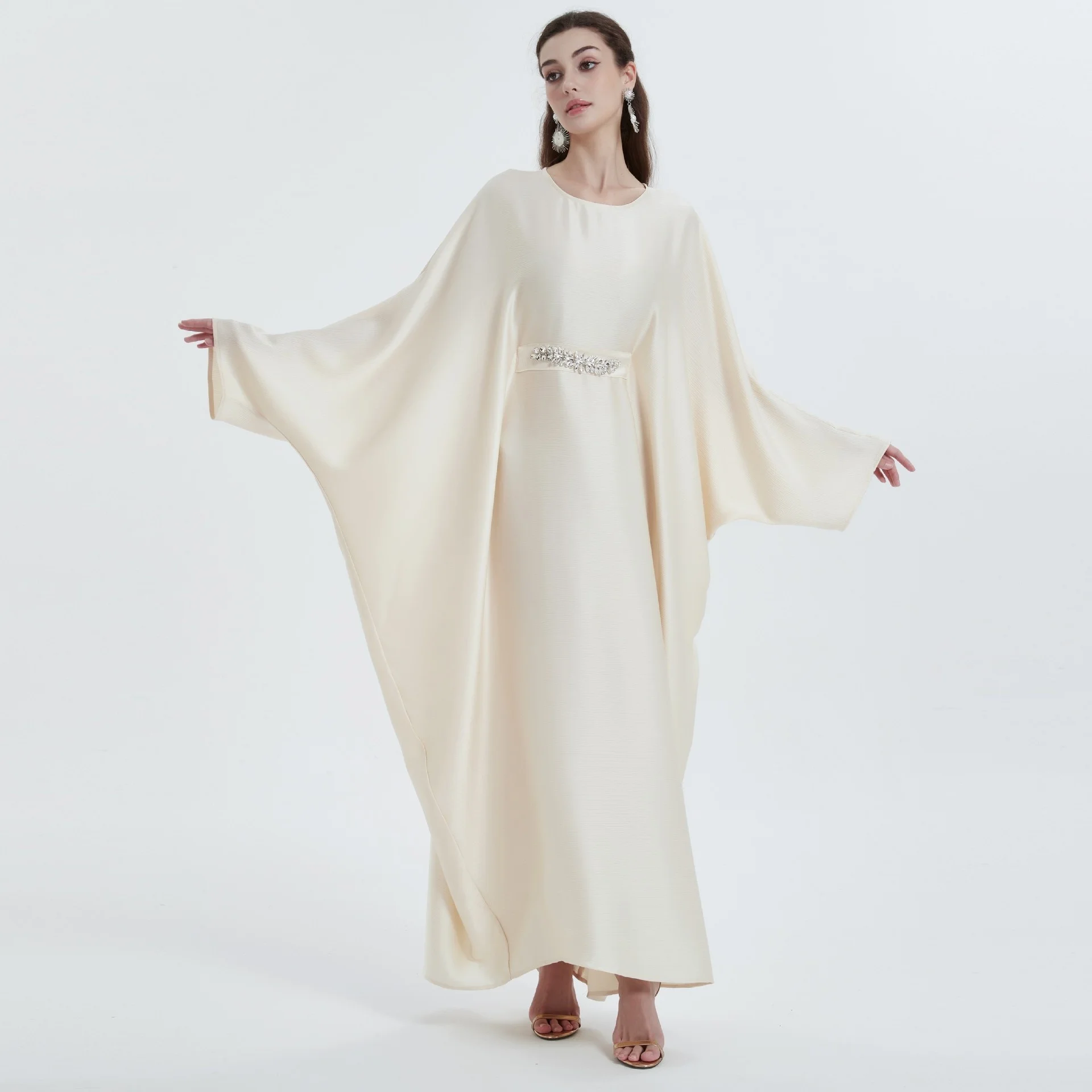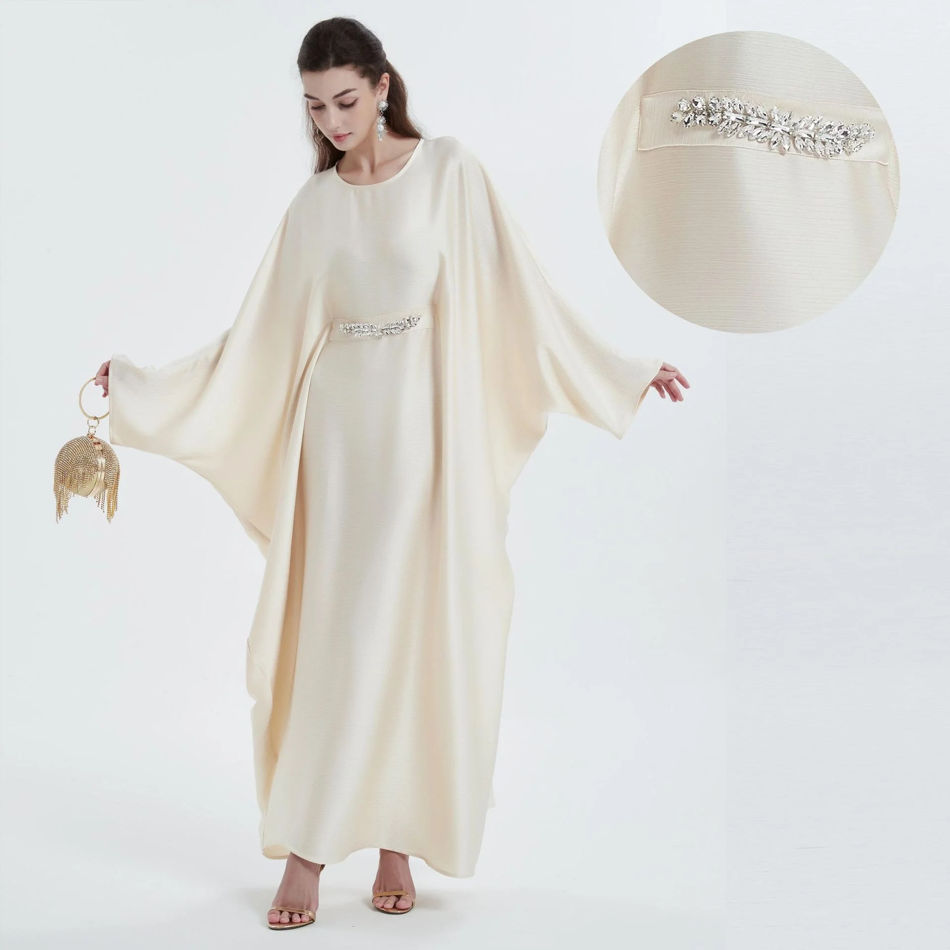 European American Women's Summer Kaftan Modest Diamond-Encrusted Abaya Bat Sleeves Customizable OEM Moroccan-Style Robe Casual