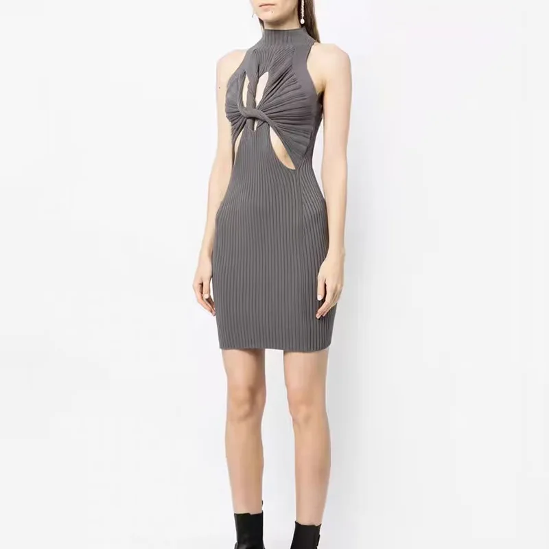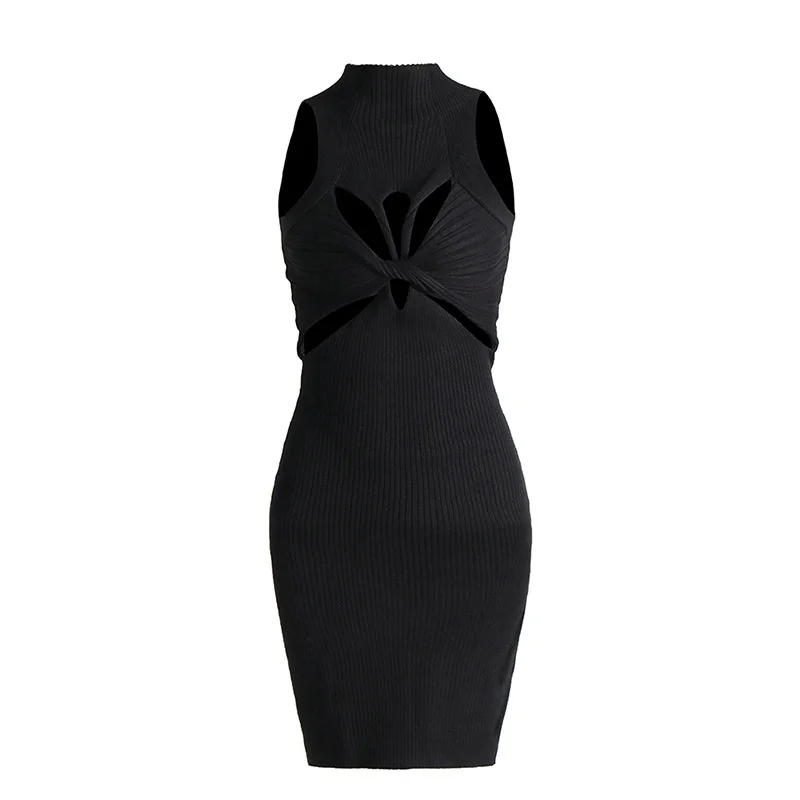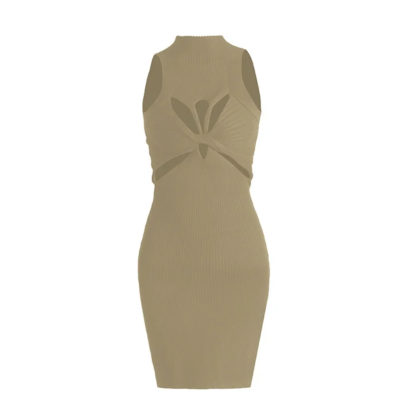 2025 Women's Casual Sexy Slimming Vest Dress Spring Summer Knitted Sleeveless Twist Design Empire Plain Dyed Pencil Clothing